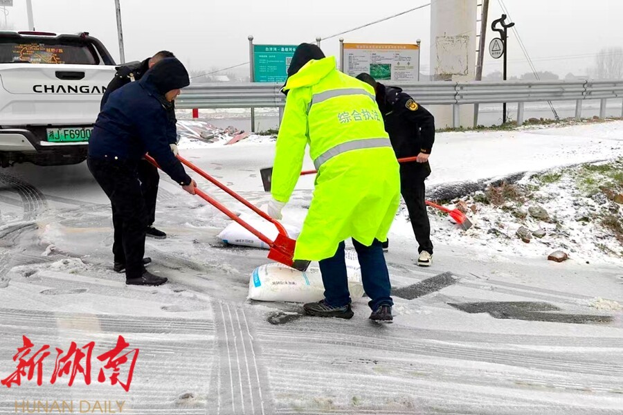 抢险队伍开展道路除冰作业