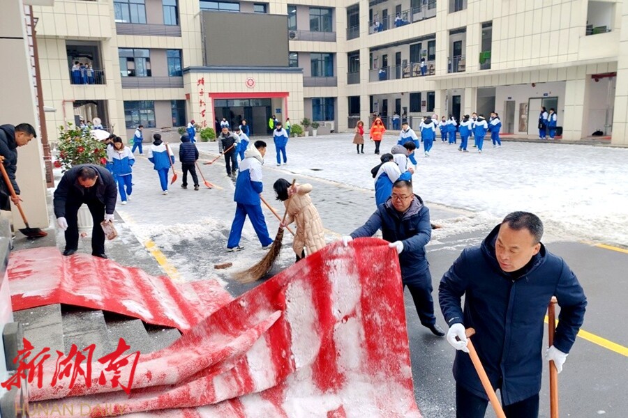 一场风雪,一次考验,一份担当。面对突发雪情,桃源二中以“领导带班、部门联动、全员参与”的工作机制,高效有序开展除雪防滑工作,用责任与温情筑牢校园安全防线,确保教育教学秩序平稳运行。这不仅彰显了学校“生命至上、安全第一”的管理理念,更展现了完善的应急管理体系和师生同心、团结协作的集体风貌。风雪虽寒,却挡不住守护的暖意;道路虽滑,却阻不了前行的脚步。这份风雪中的坚守与担当,正是“团结协作、责任担当”校园精神的生动实践,也为冬日校园注入了最坚实的温暖力量。