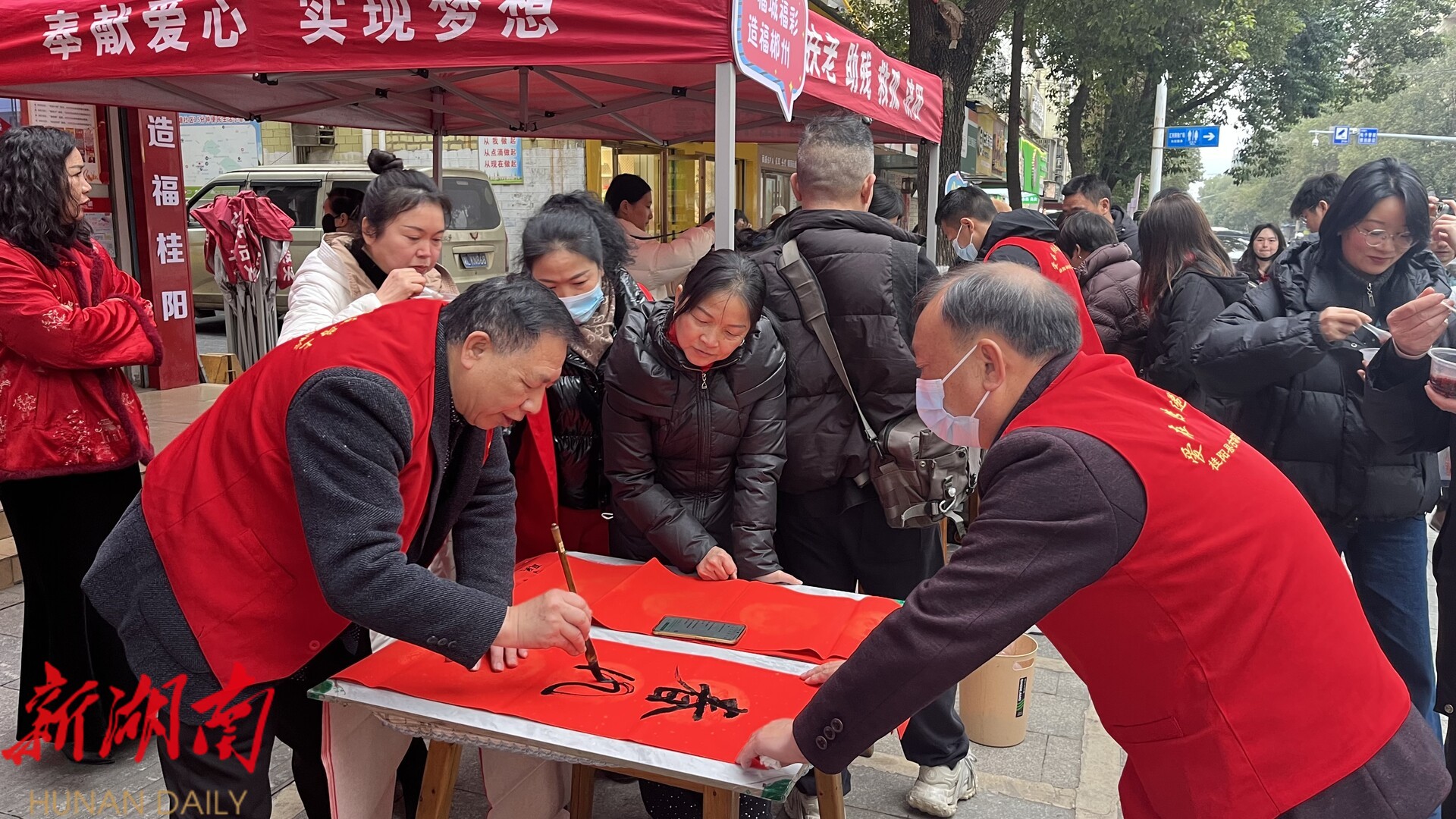 除了暖心暖胃的腊八粥,书法志愿者们还挥毫泼墨,一幅幅笔力遒劲的春联、一张张寓意吉祥的“福”字,在笔墨挥洒间传递着浓浓的年味与祝福。市民们一边品尝腊八粥,一边挑选心仪的春联,传统节日的仪式感与幸福感在欢声笑语中不断升温。
