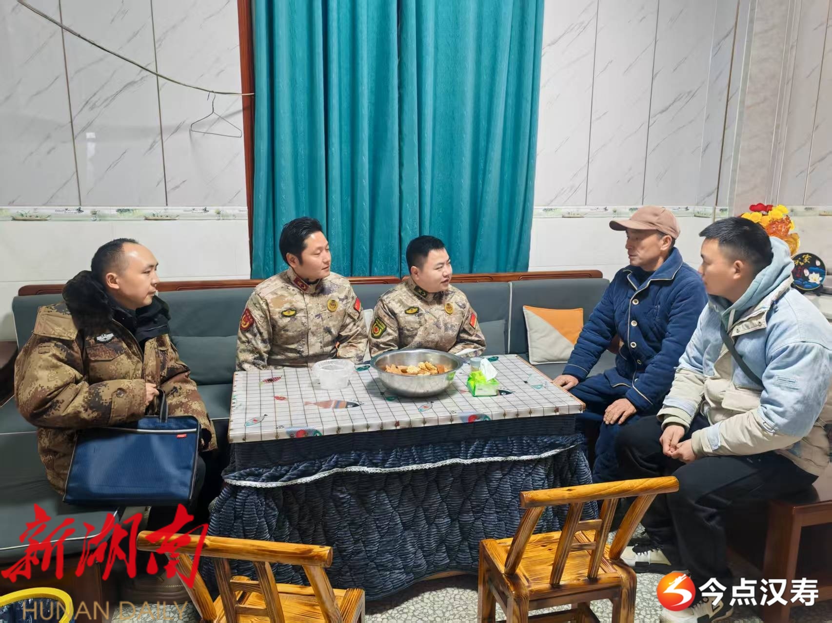 汉寿融媒1月27日讯(通讯员:祝造华)1月27日上午,汉寿县株木山街道武装部、退役军人服务站工作人员,为辖区内4名立功受奖军人家庭送上承载着荣耀的喜报,并为部分军属更换了新的“光荣之家”荣誉牌匾。