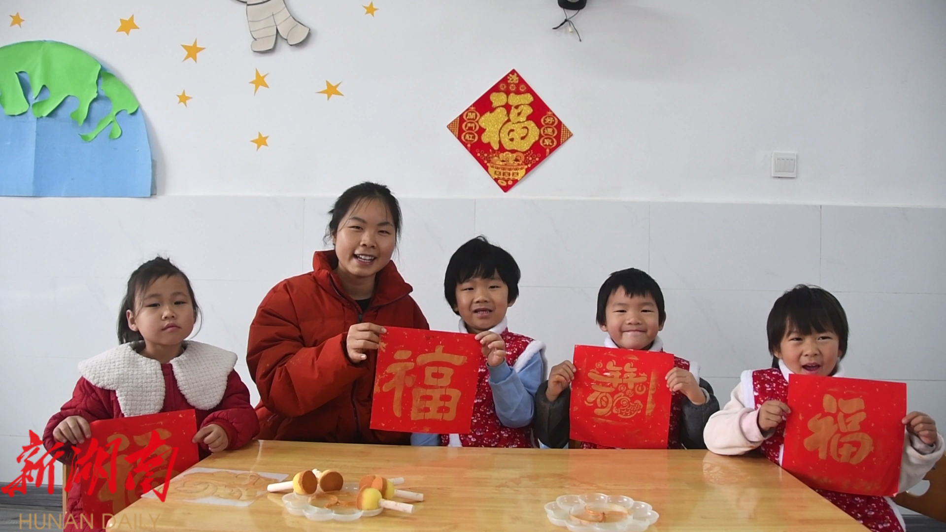 江永县工业集中区幼儿园教师王倩介绍,园方通过讲解腊八节民俗,让孩子们体验传统文化,在欢乐氛围中迎接春节。