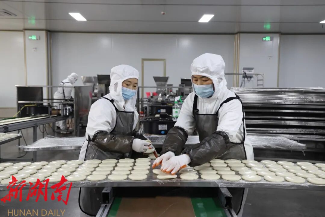 “每年九月至次年三月是糍粑销售旺季,眼下正值寒冬年关,市场订单量更是大幅攀升,公司目前日产糍粑近4万斤,产品依旧供不应求。”湖南苗十八食品科技有限公司总经理罗琴谈起近期销售情况,语气中满是欣喜,“为了不让消费者等货,我们正加快启动下一条生产线,进一步扩大产能,把这份地道年味及时送到更多人餐桌上。” 订单火爆的背后,是湖南苗十八食品科技有限公司自2018年12月成立以来,对品质的极致坚守与对创新的持续深耕。作为集糯米糍粑研发、生产、销售于一体的现代化食品企业,目前公司已经从初创时相对单一的品类逐步构建起多元丰富的产品矩阵,经典原味糯米糍粑保留地道本味,高粱、玉米等杂粮糍粑兼具营养与风味,芝麻花生馅、红豆馅等包馅类糍粑甜香四溢,多品类、多风味的产品布局,让苗十八糍粑成功覆盖不同消费场景,成为老少皆宜的爆款美食。 夯实产品力的同时,公司在长沙设立销售及物流中心,积极拓展多元化销售渠道,线上线下同步发力,不断优化物流与销售网络,高效辐射全国市场。目前,产品已成功进驻沃尔玛、步步高各大商超,走进千家万户的菜篮子,并依托各大电商平台,将这份地道的永定美味销往全国各地。 市场的热烈反响,推动着企业加速扩张。2024年8月,总投资5500万元的新厂区建设正式启动,项目分两期稳步推进,其中一期项目总建筑面积7400㎡,已于2025年11月初顺利完成基础设施建设与设备调试,进入试生产阶段,其打造的糍粑自动化生产流水线,通过对设备的不断更新升级,实现了糍粑从原料处理到成品包装的标准化、高效化生产,既降低人工成本,又能保障产品口感和品质的统一性。 “一期项目全面投产后,糍粑单日产能最大可达30吨,预计年产糍粑5000吨、年产值5000万元左右!”罗琴介绍,届时不仅能直接提供120个就业岗位,还能带动本地糯米种植、物流运输、包装印刷等相关产业协同发展,形成良好的产业集群效应,让小小的糍粑串起一条完整的富民产业链。 产业发展的红利,正实实在在惠及周边群众。新厂区的落成,让不少家住附近的村民实现了“家门口就业”,既能挣钱补贴家用,又能照顾到家里。来自新桥镇远大村的张宏雪,是新厂区投产后入职的新员工,每天从家到车间只需十分钟左右的车程,让她格外满足。她笑着说:“公司不仅离家近,月收入有四五千元,干活格外有劲!” 车间里,像张宏雪这样的员工还有不少,他们靠着一双勤劳的双手,在家附近的糍粑车间里,挣上了稳稳的幸福,日子越过越红火。 “下一步,我们将在加快推进厂区建设的同时,持续深耕产品研发与创新,推出符合年轻群体喜爱的便携又开袋即食的产品,不断完善产业链条,让‘苗十八’这个本土品牌走得更远、做得更强,从而带动更多本地群众就业增收,让小小的糍粑真正成为撬动乡村振兴的‘大产业’!”罗琴满怀憧憬地说道。