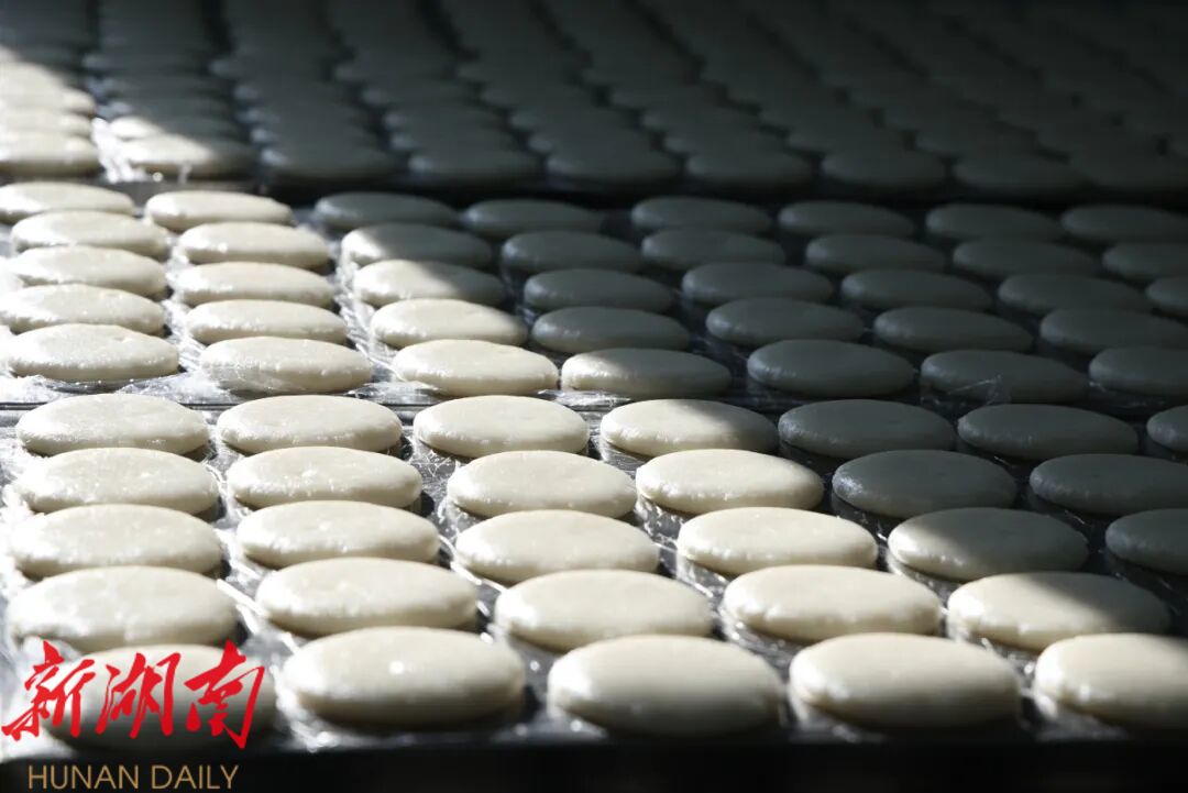 湖南日报·新湖南客户端1月27日讯(通讯员 解雯惠 余春燕 龚雯)隆冬时节,位于永定区新桥镇的湖南苗十八食品科技有限公司糍粑生产车间却热气腾腾。糍粑自动化生产流水线马力全开,一个个圆润饱满的糍粑接连不断地从传送带上传出,工人们有序分拣、码放、冷却、封装,各环节衔接紧密,一派繁忙有序的景象。