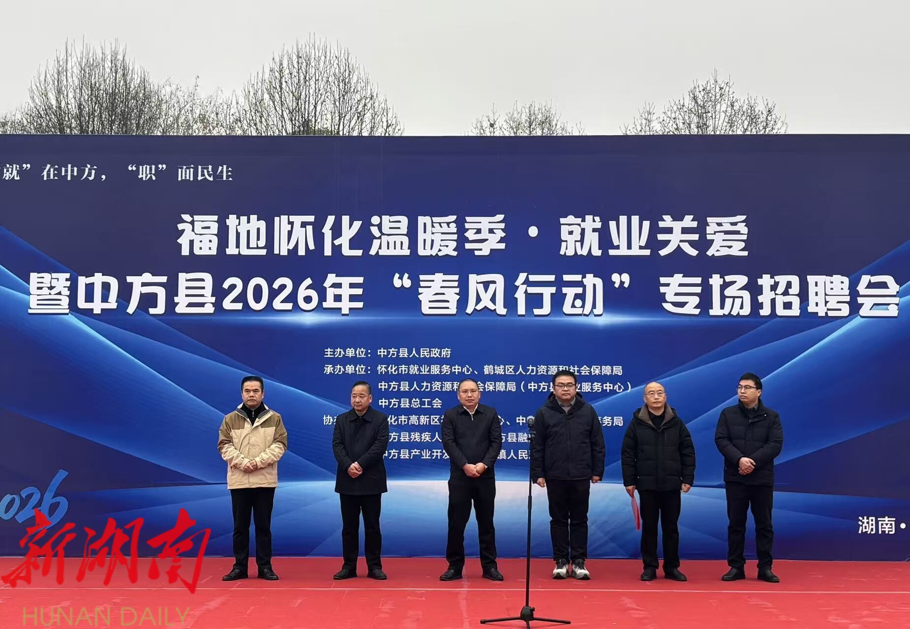 中方融媒1月28日讯 (记者:石端) 1月28日,福地怀化温暖季・就业关爱暨中方县2026年“春风行动”启动仪式在中方县城金大地广场举行,县委常委、副县长刘长松出席并宣布活动启动。