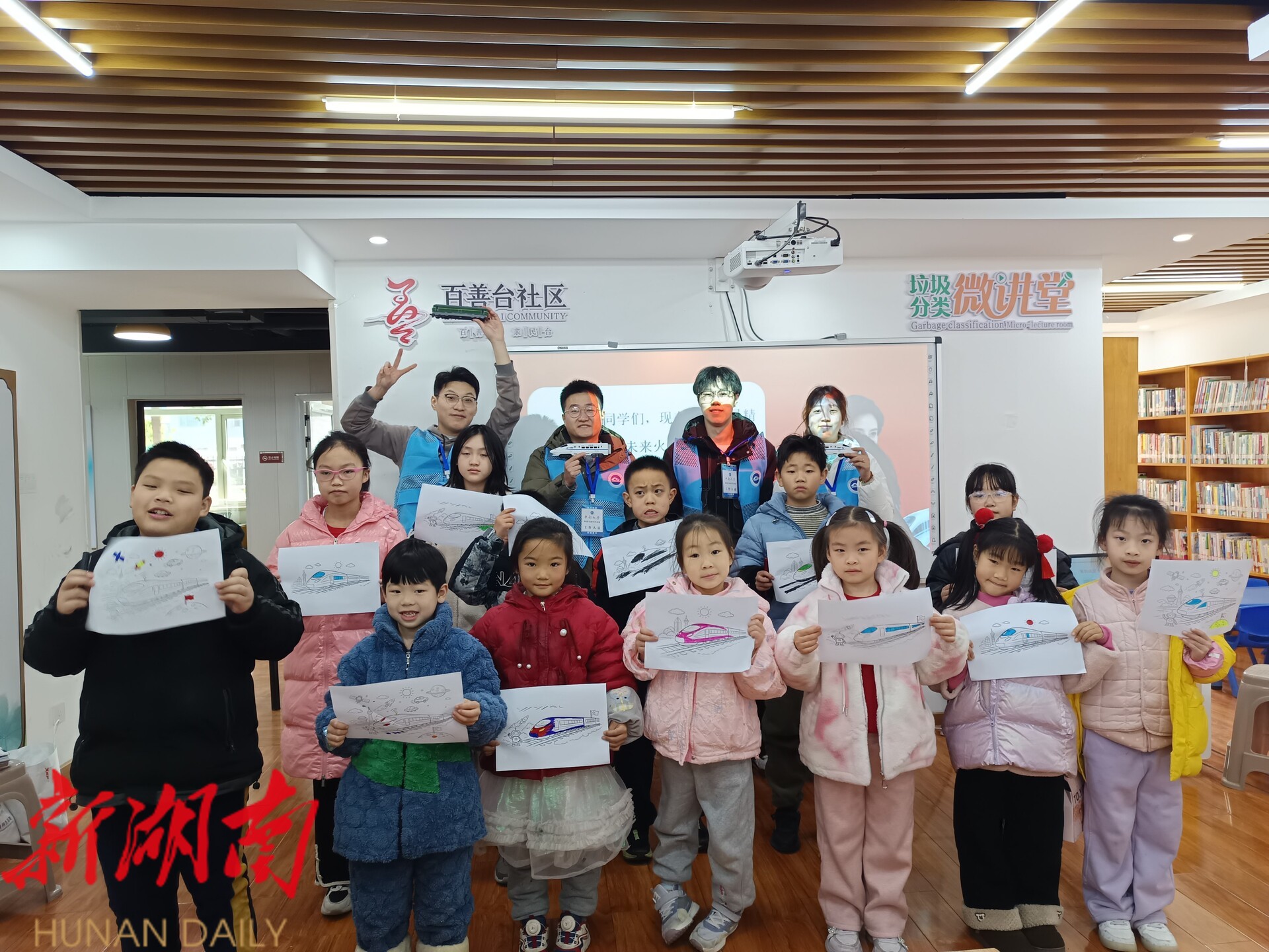 湖南日报·新湖南客户端1月28日讯(通讯员 戴思乐)为弘扬科学精神、丰富青少年假期生活,1月28日,开福区湘雅路街道百善台社区联合中南大学交通运输工程学院“高铁小讲师”社会实践团,在社区善邻书楼举办“高铁变形记·少儿科普讲座”。活动吸引众多社区青少年参与,共同踏上了一场探索“中国速度”、感受科技魅力的奇妙之旅。