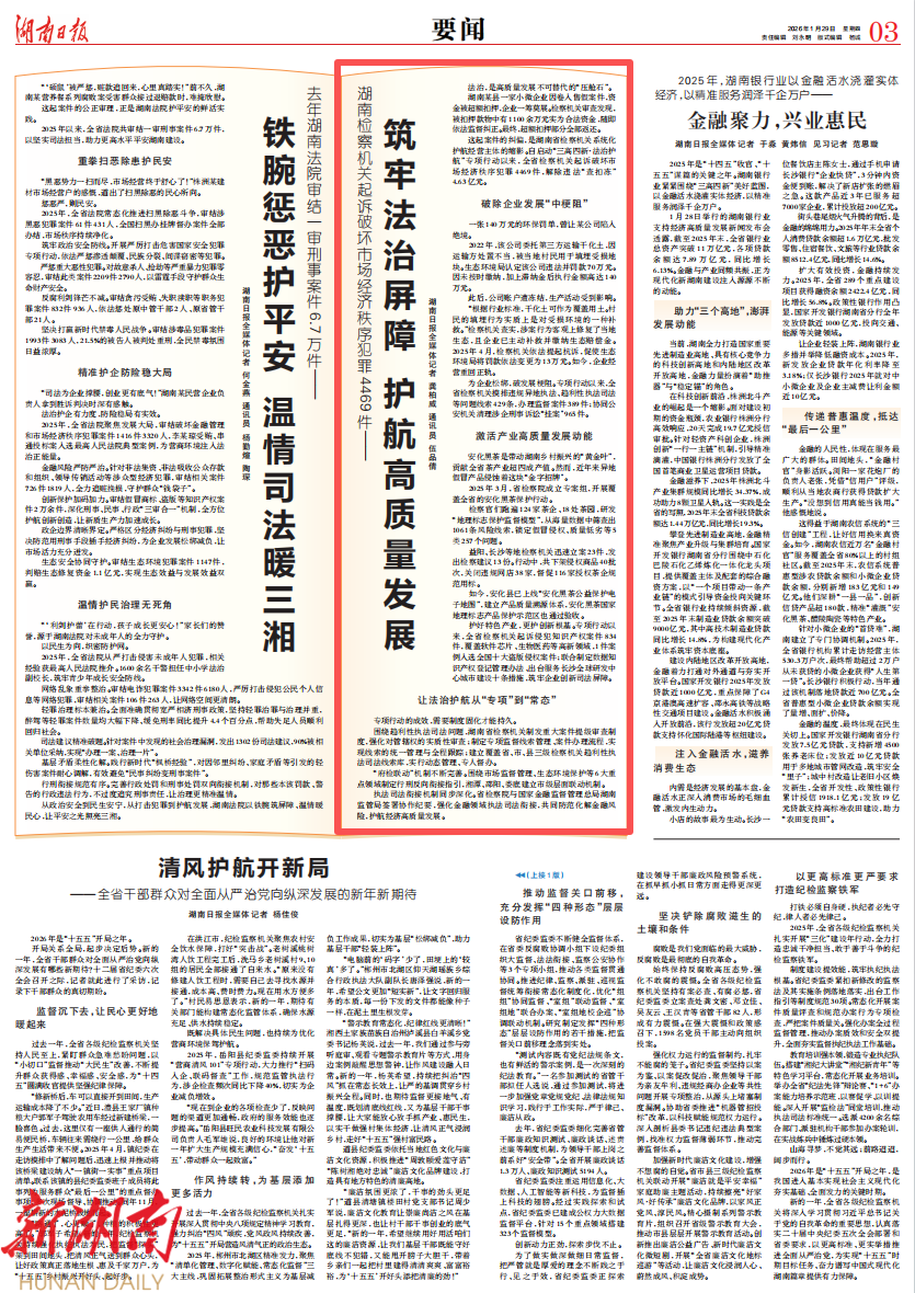执法司法衔接机制同步深化。省检察院与国家金融监督管理总局湖南监管局签署协作纪要,强化金融领域执法司法衔接,共同防范化解金融风险,护航经济高质量发展。