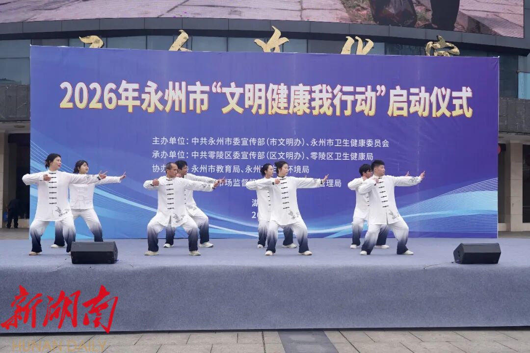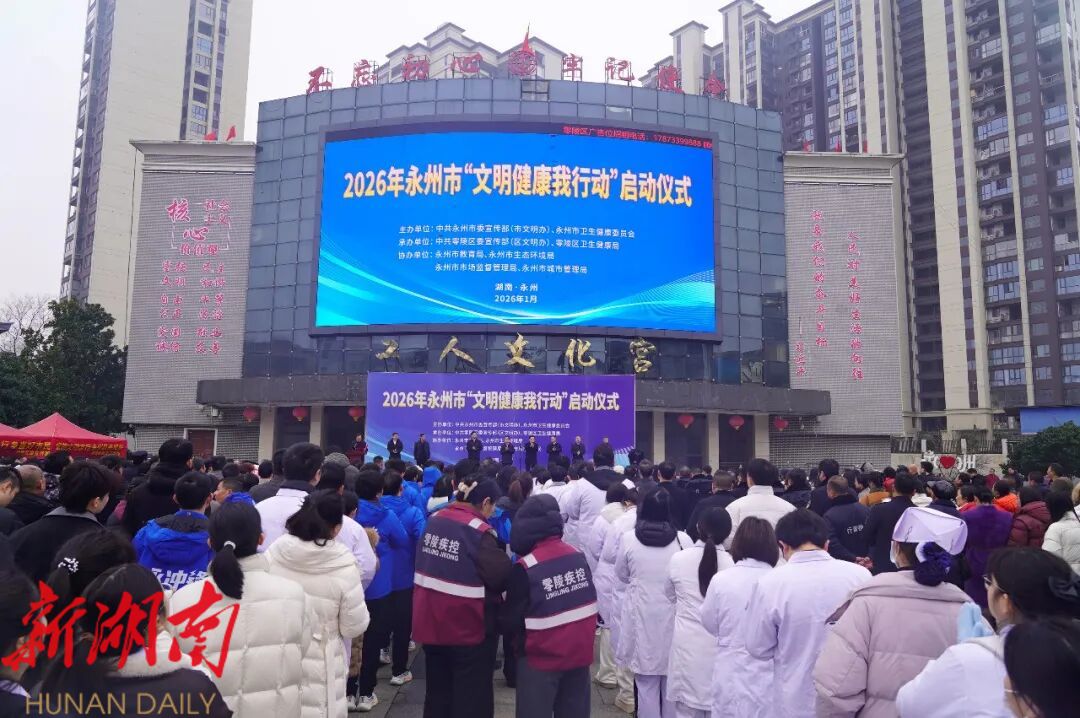 湖南日报·新湖南客户端1月29日讯( 通讯员 汪清扬 陈思平 丁建勋)1月28日上午,永州市“文明健康我行动”启动仪式在零陵区安康广场举行。活动旨在动员全市上下积极践行文明健康理念,倡导科学、绿色、文明的生活方式,通过示范引领和全民参与,推动形成讲文明、讲卫生、重健康的社会风尚,进一步提升城市文明程度和居民健康素养。