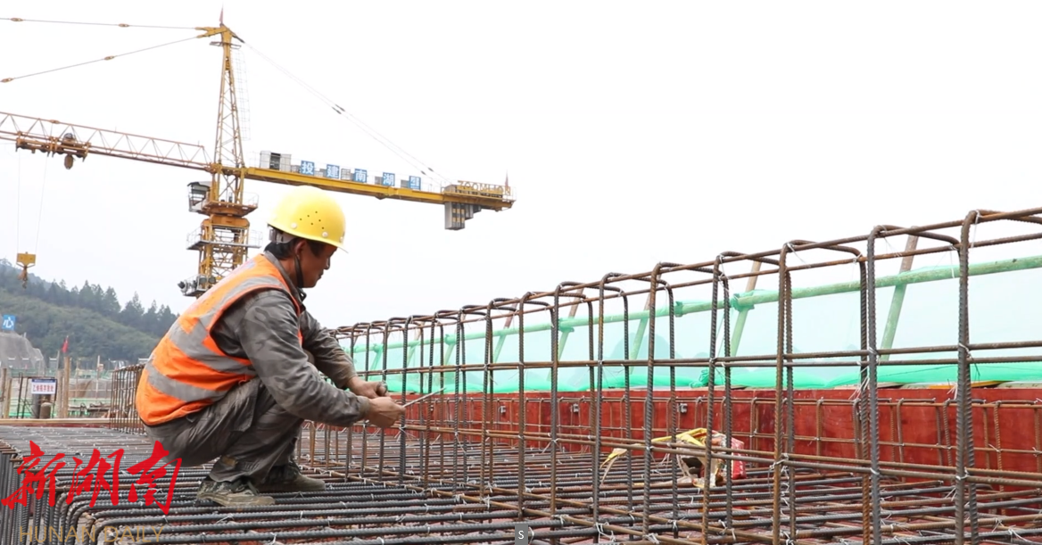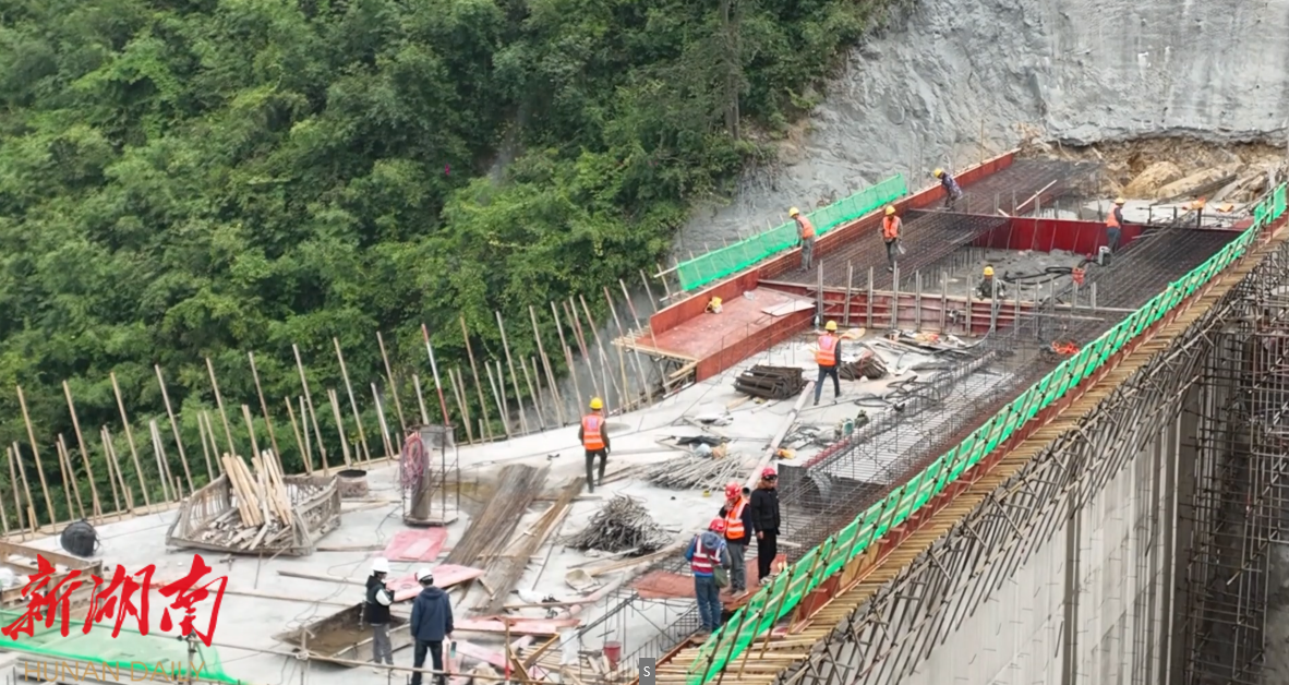 走进九嶷水库建设现场,机器轰鸣声响彻山谷,塔吊、挖土机、破碎机、切割机等机械设备协同作业,各司其职,有条不紊地推进灌区输水箱涵、坝顶悬挑梁、溢洪道闸墩等关键部位施工。80余名建设者身披反光背心、头戴安全帽,分组投身模板安装、钢筋焊接、混凝土浇筑及养护等各项作业中。他们干劲十足、一丝不苟,严格恪守每一道施工标准,精准把控工程质量与进度。“我们按图施工,确保工艺顺序正常,无论是每一个环节都严格把控,确保工程零误差,工程全部合格。”大坝施工班组组长杜伦斌说道。