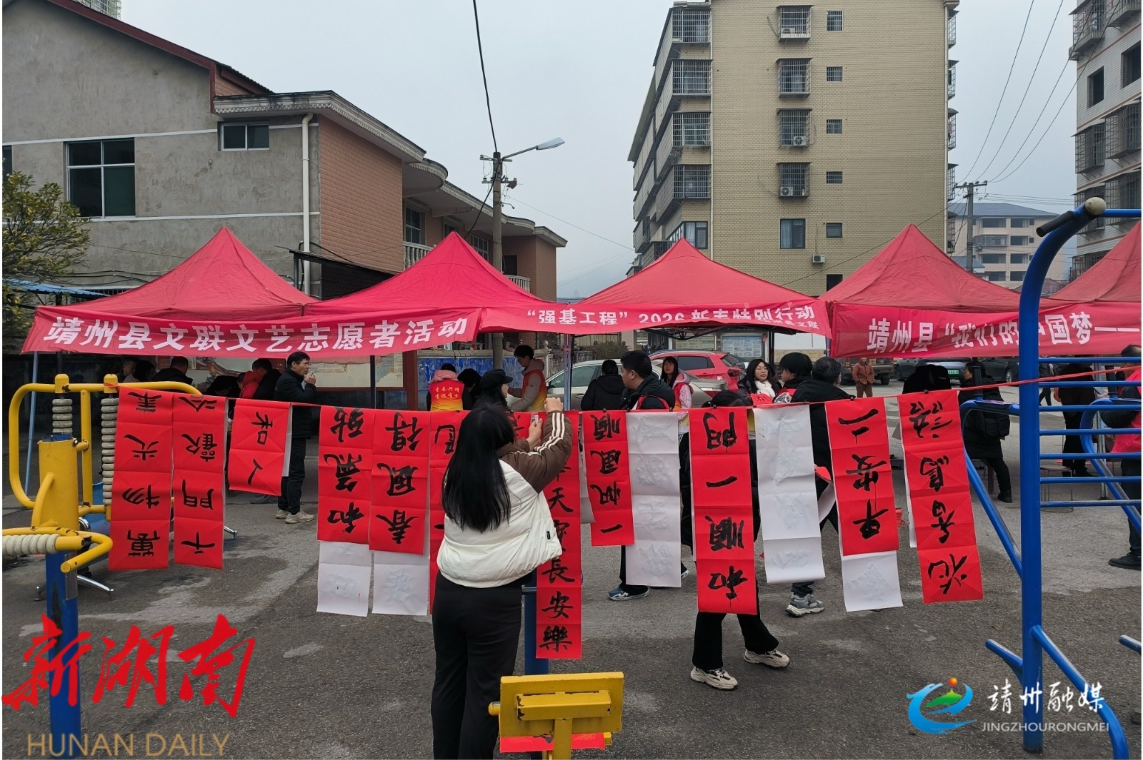 靖州融媒1月29日讯 (通讯员 易红)1月28日,靖州苗族侗族自治县文联联合渠阳镇友谊村,开展“我们的中国梦 文化进万家”送福迎春活动,将新春祝福送到村民家门口,营造浓厚年味。