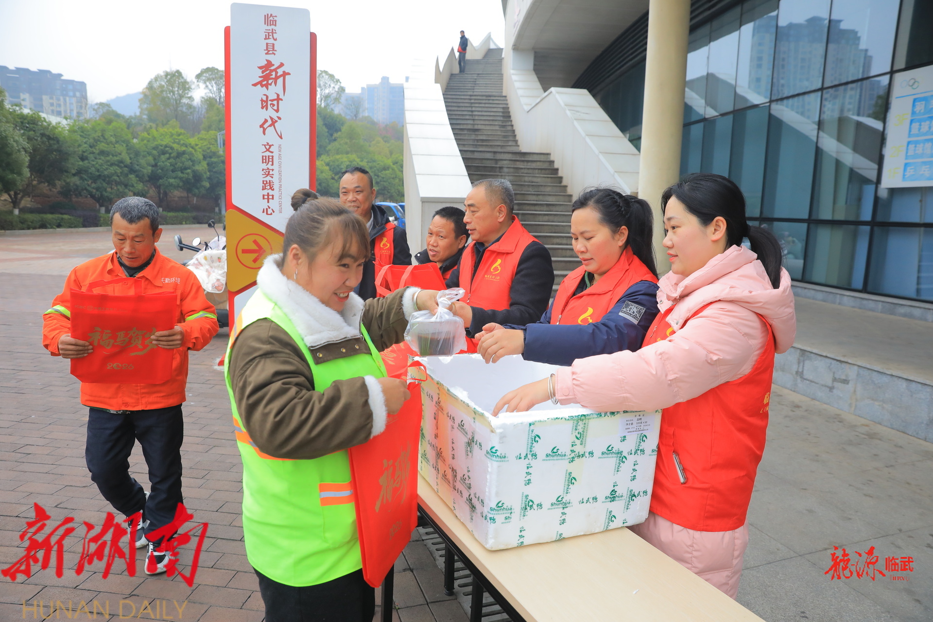 腊八逢年,温情加倍。1月27日,临武县新时代文明实践中心联合县总工会、县好人协会开展“暖心腊八迎新春,文明实践传温情”活动 。志愿者们不仅送出春联,还熬制了香甜的腊八粥分发给过往群众。在县城主要路口,环卫工人、快递小哥、都收到了这份冬日温暖。“腊八粥喝下去,身上暖和,心里更暖和!”环卫工人赵大姐捧着粥碗,笑容满面。