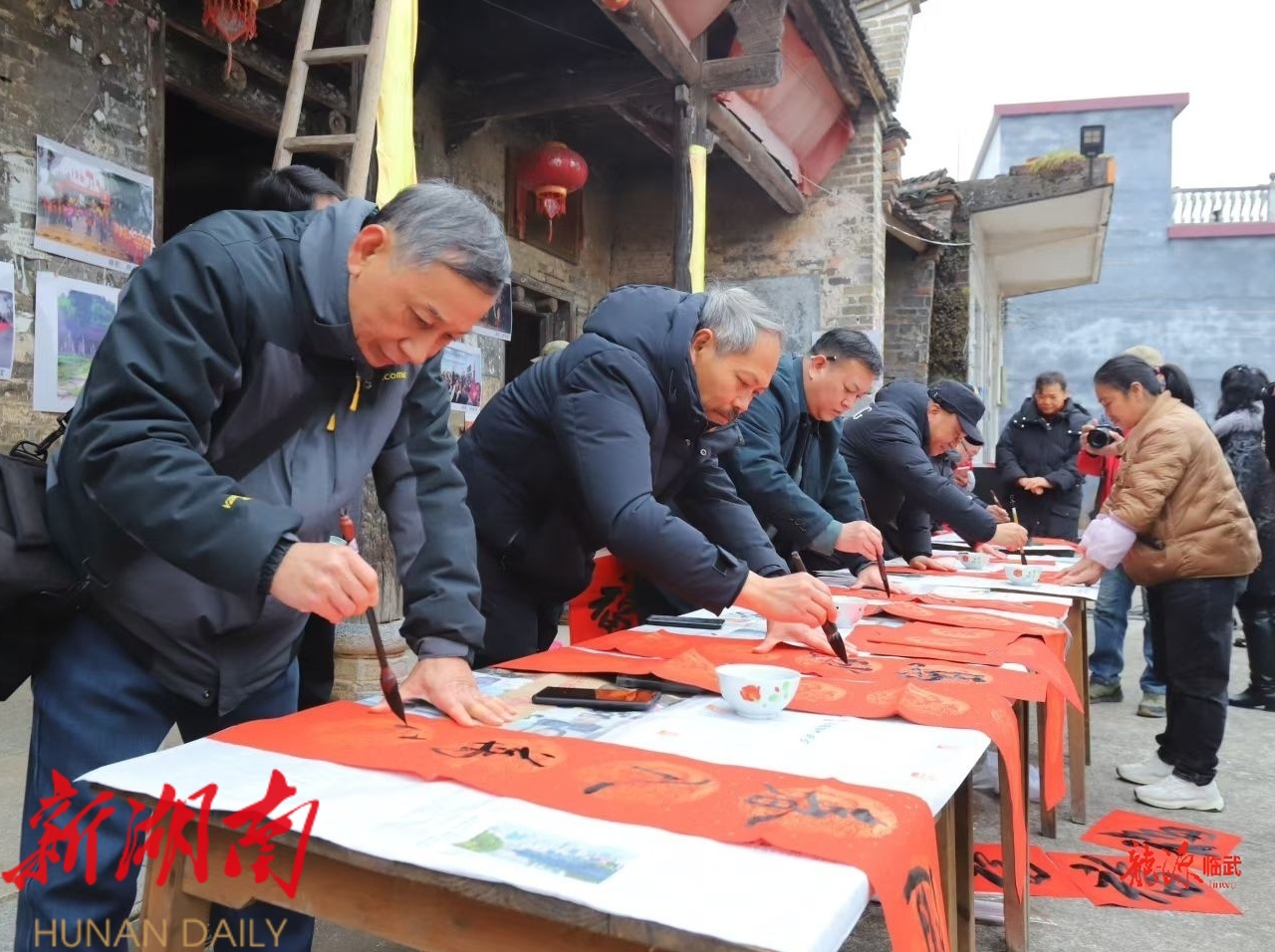 1月24日,南强镇古山村新时代文明实践站一片欢声笑语。临武县新时代文明实践中心联合县文史研究会、县书法家协会开展“文明实践暖新春 笔墨飘香送祝福”手写春联送祝福文明实践活动。活动现场, 书法爱好者挥毫泼墨,将美好的新春祝福凝于笔端,一副副寓意吉祥的春联在村民手中传递。一旁的书画、摄影展览也吸引了不少群众驻足欣赏。与此同时,文艺志愿者带来的歌舞、戏曲等节目引得掌声阵阵。