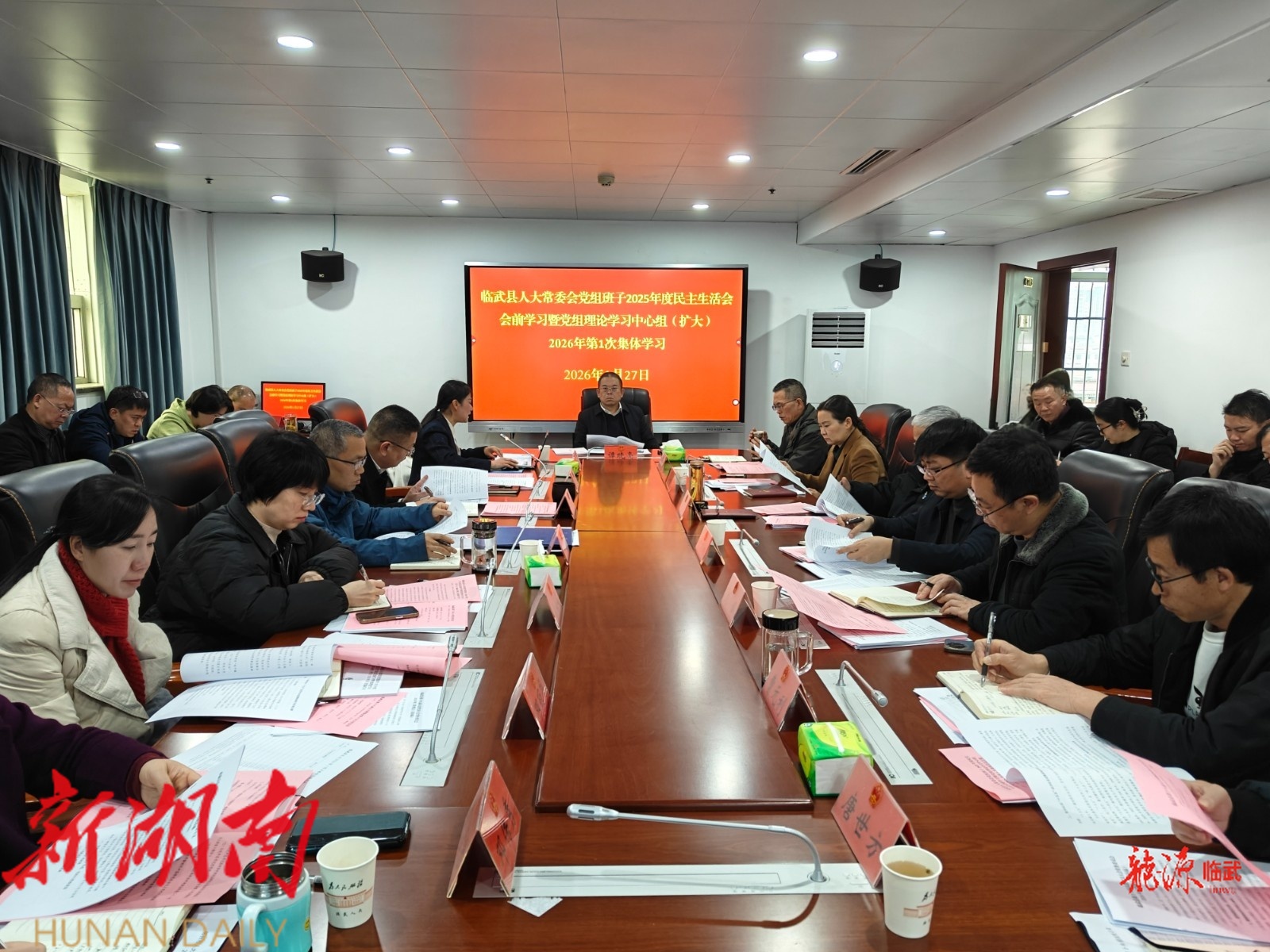 龙源临武客户端1月29日讯(通讯员 石建中 唐辉)近日,县人大常委会党组书记、主任谭晓亮主持召开临武县人大常委会党组班子2025年度民主生活会会前学习暨党组理论学习中心组(扩大)2026年第1次集体学习会议。