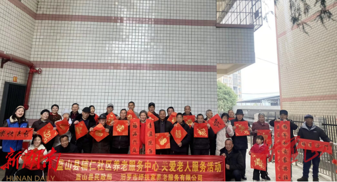 新蓝山客户端1月29日讯 (通讯员 成磊 罗红珍)近日,辅仁社区老年人日间照料服务中心组织开展“笔墨迎春暖夕阳 携手共庆幸福年”主题活动。活动邀请书法老师与长者一同书写春联、体验福字拓印,为困难老人上门赠送春联,传递诚挚的新春祝福。