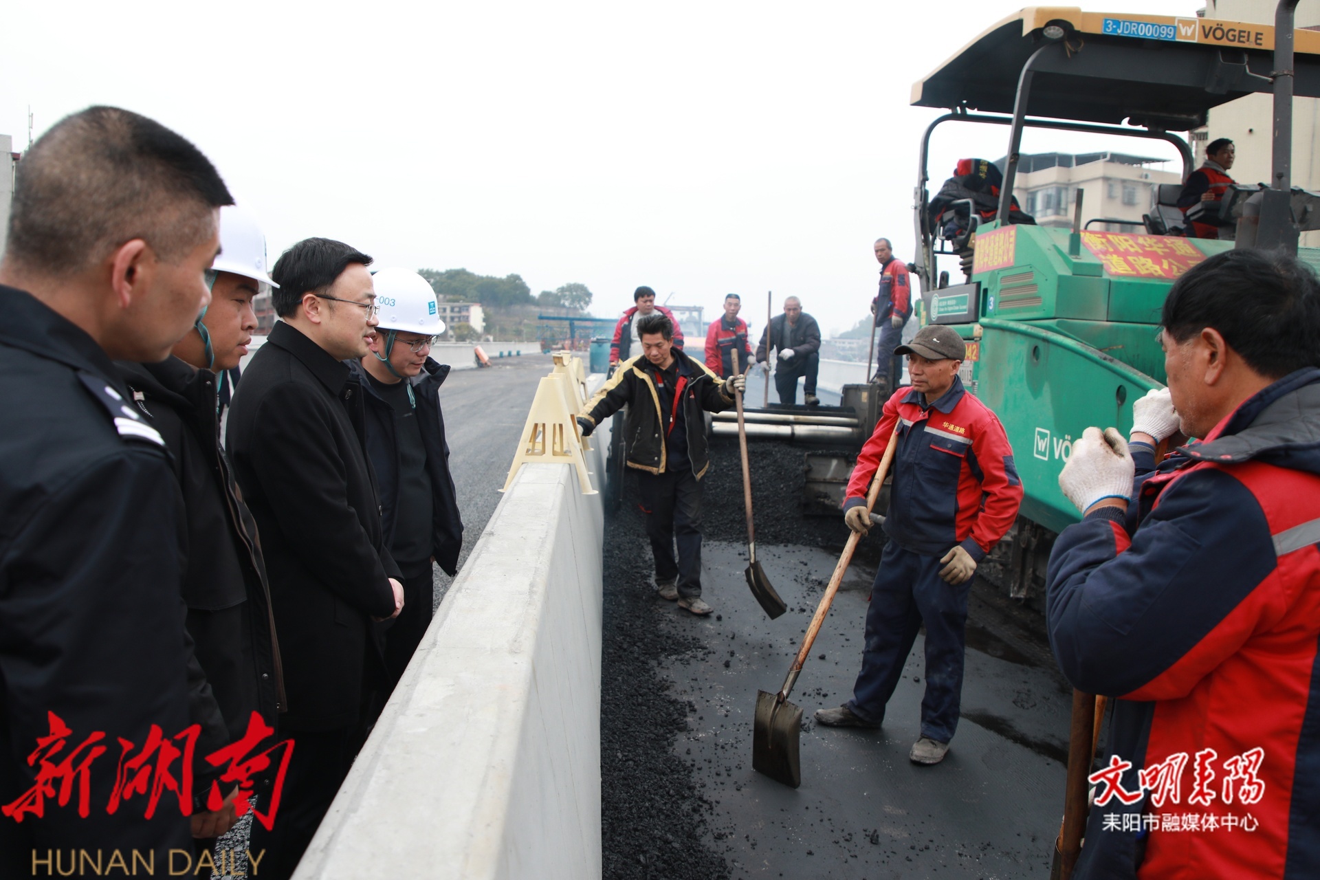 耒阳融媒1月29日讯(记者 袁成龙 曾志明) 1月28日,市委书记张润槐调研督导武园路上跨京广铁路立交桥通车筹备工作,看望慰问一线施工人员。他强调,要继续发扬“实事求是、真抓实干,担当作为、奋勇争先”的精神,保持攻坚状态,加大工作力度,全力推进各项扫尾工程,确保春节前建成通车。