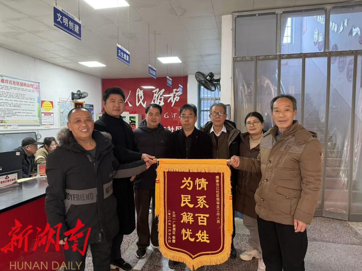 湖南日报·新湖南客户端1月29日讯(通讯员 宁新综) 近日,宁远县舜陵街道泠江社区水泥厂家属房居民代表,将一面绣有“情系百姓,为民解忧”的锦旗送到社区居委会工作人员手中,表达对社区高效解决污水堵塞难题的由衷感谢。