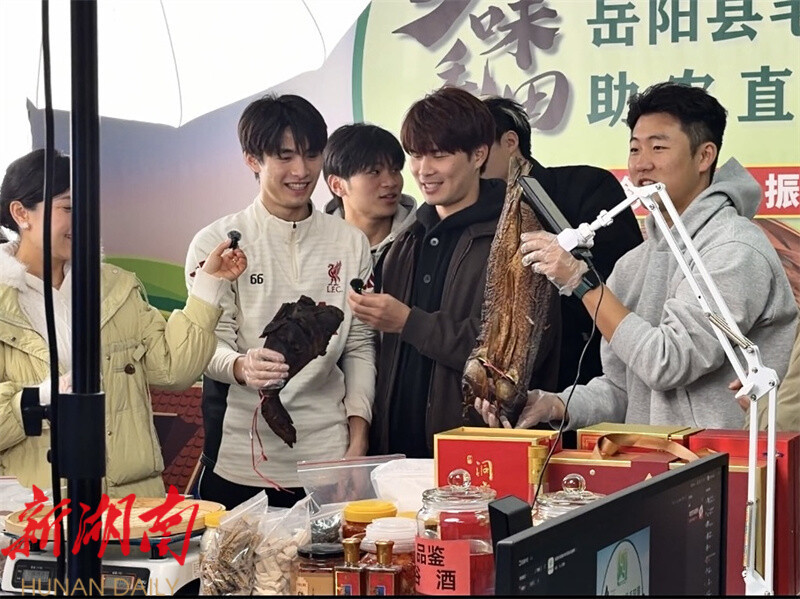湖南日报·新湖南客户端1月29日讯(通讯员 尹宇豪) 一边是田间好物的“吆喝声”,一边是校园操场的“欢呼声”!1月28日,毛田镇迎来了一群特殊的“客人”——湘超岳阳队的言奥博、毛一鸣、梅碧瑞、韩伊川、吕阳五位球员,携着绿茵场上的拼搏热忱,带着助力乡村的赤诚暖意,开启了“助农直播+足球教学”的双重公益之旅,让乡村的冬日洋溢着满满活力。