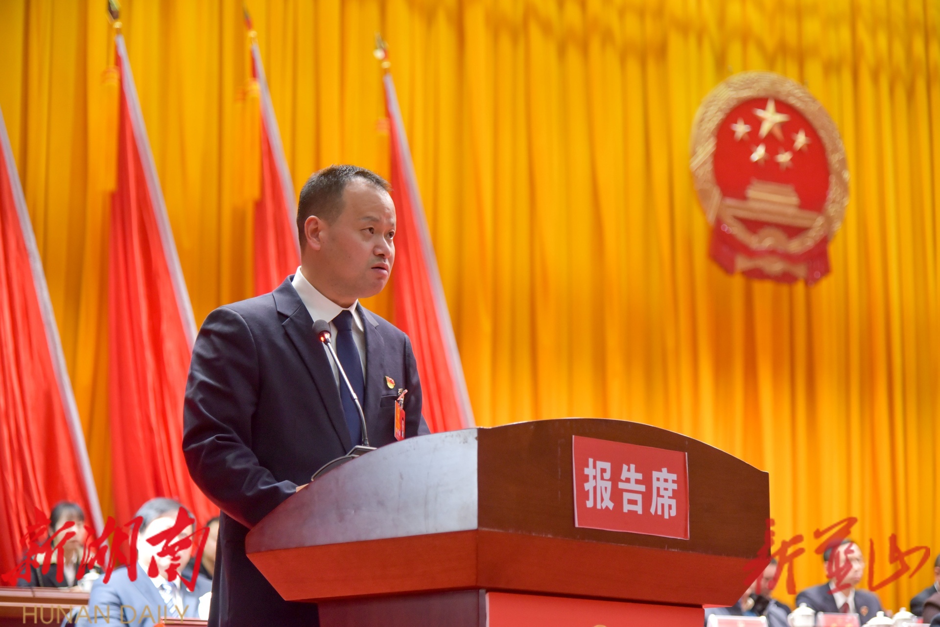 在热烈的掌声中,新当选的县人民政府县长曾艺发表讲话,他指出,到蓝山工作以来,他切身感受到了这片土地的厚重底蕴与蓬勃生机,领略到了开放包容、敢为人先的蓝山精神,见证了“党心带民心、上下一条心”的蓝山力量。