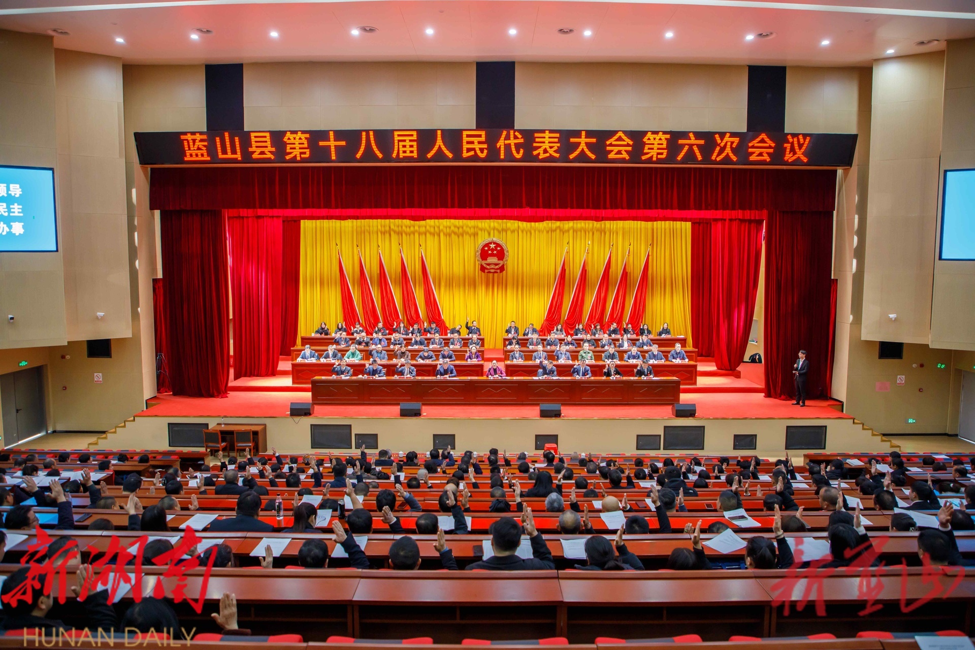 新蓝山客户端1月29日讯 (通讯员 王玉珏 盘俊杰 王艺淞 易紫轩) 1月29日,蓝山县第十八届人民代表大会第六次会议在圆满完成各项议程后,在县工人文化宫胜利闭幕。