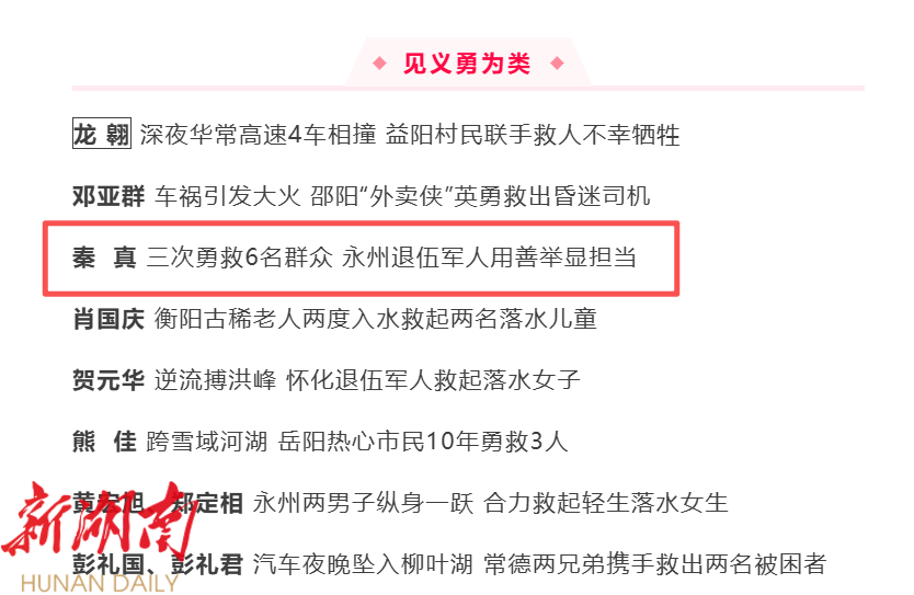 三入激流 勇救六人——零陵区秦真获评“湖南好人”