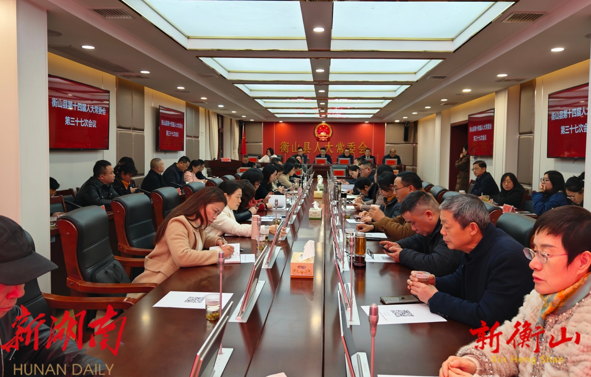 新衡山客户端1月30日讯(记者:何思霞 刘星语)1月29日下午,县第十四届人大常委会召开第三十七次会议。县人大常委会主任旷志军出席会议并讲话,县人大常委会副主任旷立伟、赵晓阳、符洪钧、陈燕春、罗光辉参加会议,县领导夏冰、蒋平、周龙、伍多益列席会议。