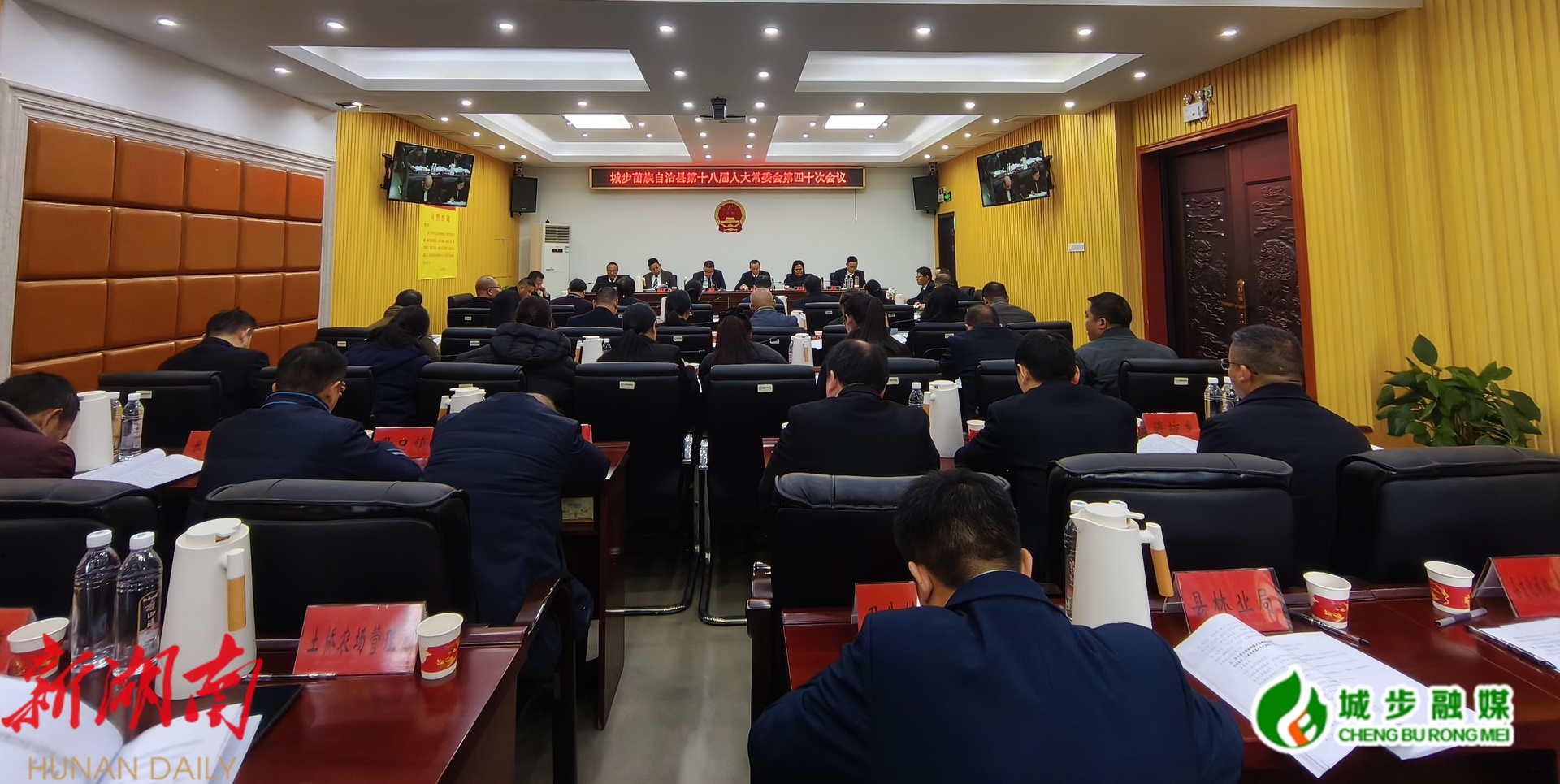 新城步客户端1月30日讯(记者 李泽洋)1月29日,城步苗族自治县第十八届人民代表大会常务委员会第四十次会议在县人大机关三楼会议室召开。县人大常委会党组书记、主任李宪主持会议并讲话,副主任周小毛、漆小玲、肖辉凤、唐炎及县人大常委会委员出席会议。会议应到县人大常委会组成人员26人,因事请假1人,实到25人,符合法定人数。
