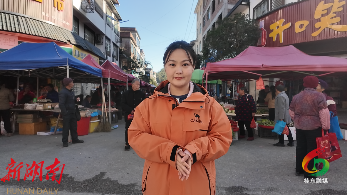 县融媒体中心主持人马俊楠:游在桂东,吃在桥头。哈喽,大家好!我现在所在的位置是桥头乡的赶集现场,说到桥头的美食,就不得不说“三个一切——米粉粘一切、茶油炸一切、米酒浸一切”。今天,我们就一起来体验一下桥头乡的烟火与风情。现在我们准备去购买制作“三个一切”的食材,走吧。
