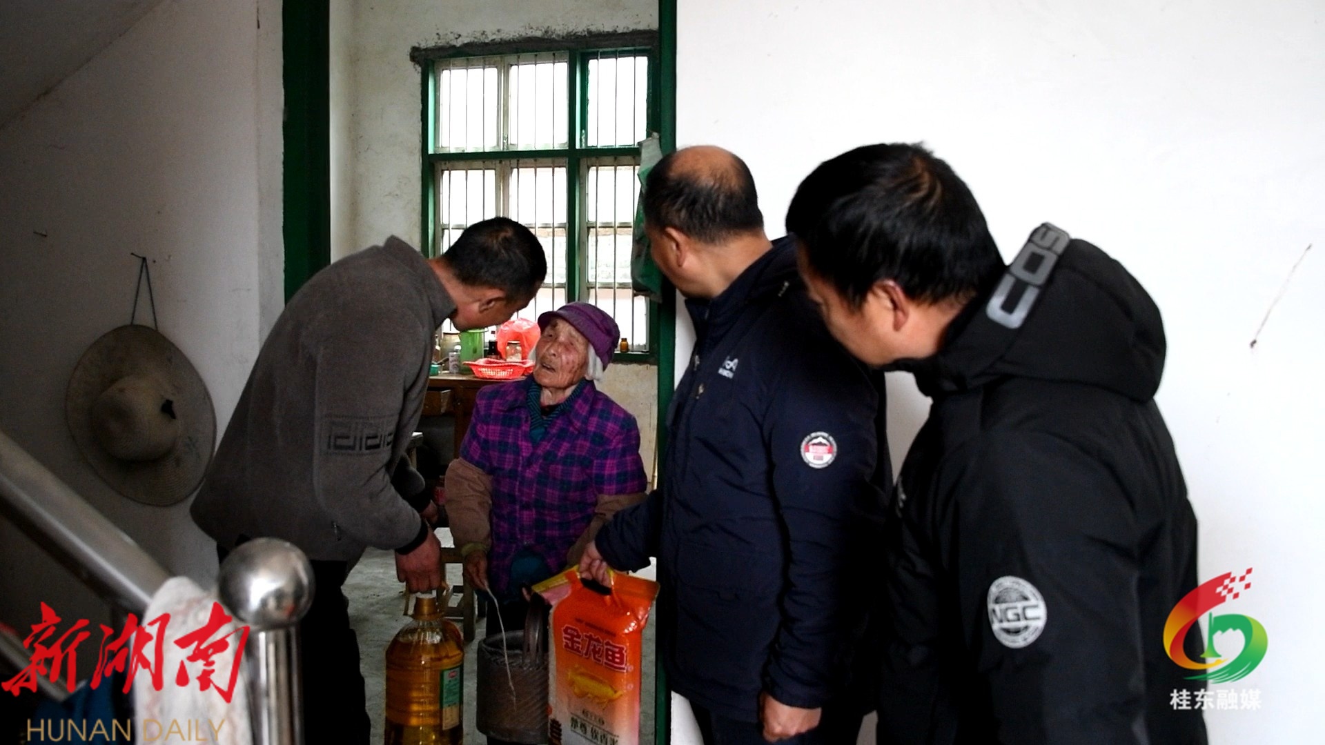 桂东县融媒体中心1月29日讯(记者 黄莎娜)近日,“全国文明村”大塘镇春风村“两委”联合驻村工作队开展节前慰问活动,为村内22位85岁以上高龄老人送去米、油等慰问品和新春祝福,以暖心举措传递民生温度,世界长寿乡的温情让冬日暖意融融。