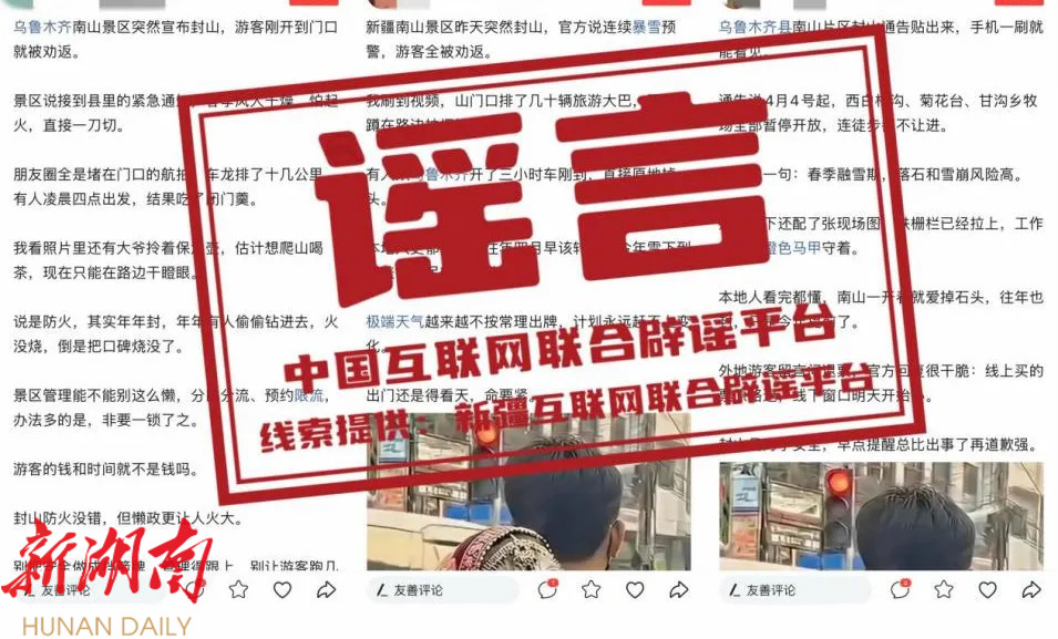 近日,有网民发布“乌鲁木齐县南山景区突然封山连续暴雪预警,游客全被劝返”的消息,引发关注。经南山景区管理委员会及乌鲁木齐县文旅局核实,此信息不实。1月28日夜间,乌鲁木齐县开始降小雪,非帖文中所说的连续暴雪,更没有突然封山的情况,县域内所有景区均处于正常开放状态,不存在游客被劝返的情况。(来源:“新疆网络辟谣”微信公众号)
