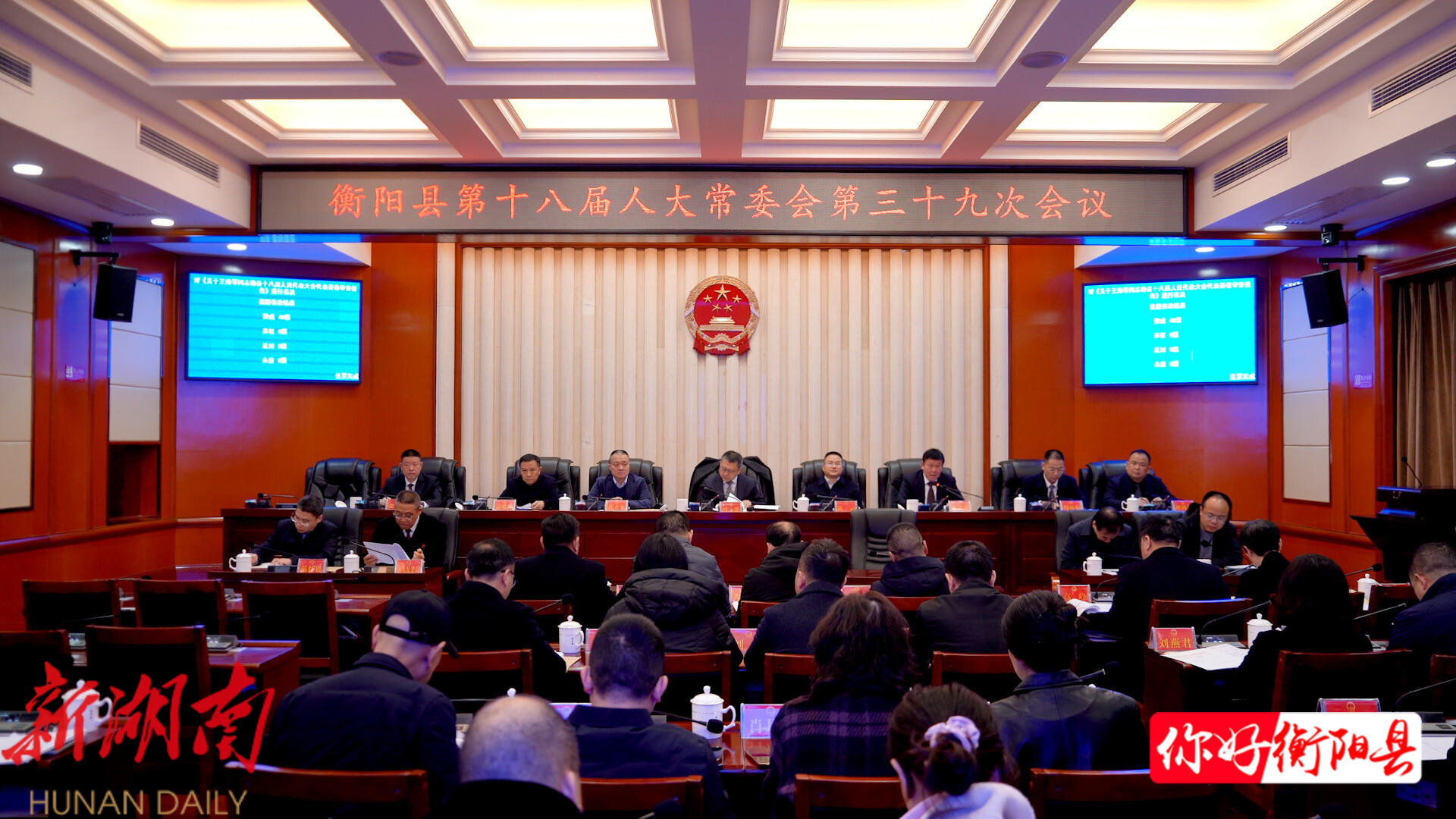 会议听取和审议了关于召开衡阳县第十八届人民代表大会第八次会议的决定(草案)。会议决定,衡阳县第十八届人民代表大会第八次会议将于2026年3月10日至13日在县城西渡召开,会期四天。会议建议议程为,听取和审议衡阳县人民政府工作报告;审查衡阳县2025年国民经济和社会发展计划执行情况与2026年计划草案的报告、衡阳县2026年国民经济和社会发展计划草案;审查衡阳县2026年预算执行情况与2026年财政预算草案的报告、衡阳县2026年财政预算草案;听取和审议衡阳县人大常委会工作报告;听取和审议衡阳县人民法院工作报告;听取和审议衡阳县人民检察院工作报告;票决衡阳县2026年民生实事项目;选举及其他。如因特殊情况调整日期,由县人大常委会依法授权主任会议决定后向社会公布。
