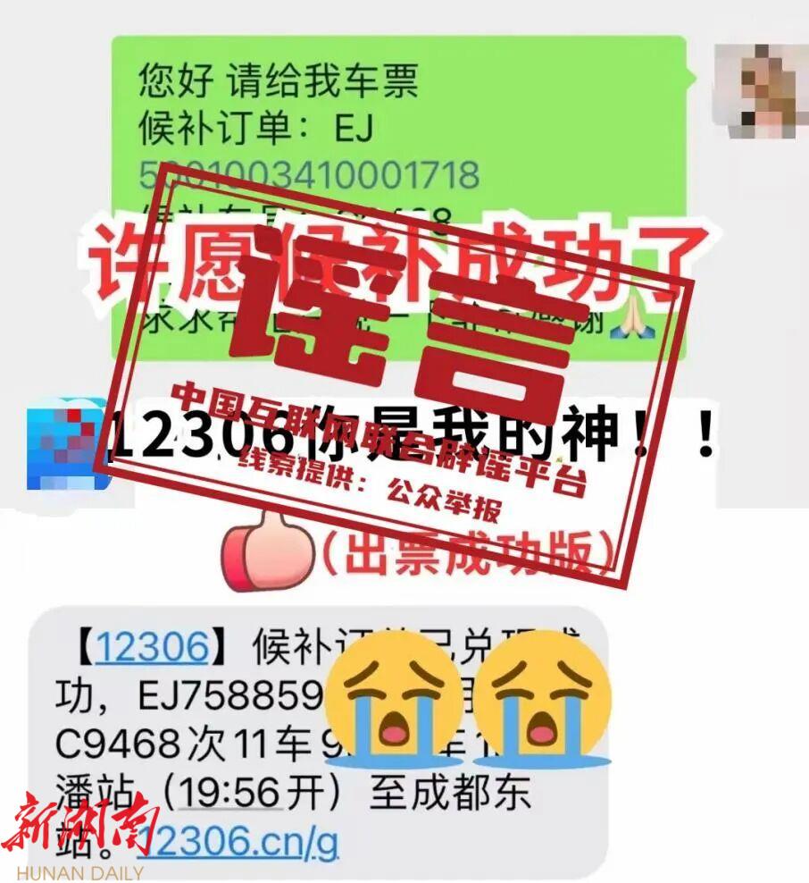 真相: 2025年4月,有网友发帖称,“通过12306微信公众号发送‘许愿候补成功’‘候补车次***,候补单号***,帮我兑现一下吧’等消息,能成功买到车票”。