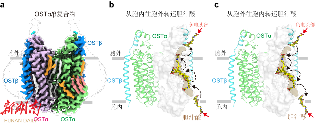 记者从中国科学院物理研究所获悉,由该所科研人员等组成的联合研究团队重构出名为OSTα/β的有机溶质转运蛋白的高分辨率冷冻电镜结构,首次揭示了该蛋白新颖的组装方式及转运机制。 在人体消化脂肪的过程中,OSTα/β功能异常会导致消化不良、胆汁淤积及肝损伤等疾病。