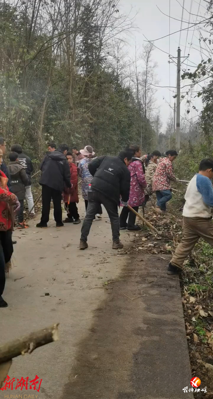 湖南日报·新湖南客户端1月31日讯(通讯员 宋显金 邓雨露 张晗)腊月风里还带着寒意,花垣县花垣镇道二村村道上却是一片热火朝天。一条蜿蜒1.5公里的村道两旁,比平时多了许多挥舞镰刀、手持竹扫帚的身影——男女老少50多位干塘坪寨的村民自发走出家门,为即将归乡的亲人清出一条敞亮整洁的“回家路”。