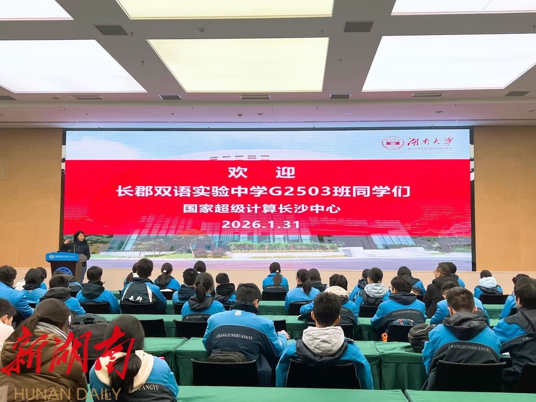湖南日报·新湖南客户端1月31日讯(通讯员 容轩)1月31日,长郡双语实验中学2503班的学生们走进国家超级计算长沙中心,开展主题为“探索算力秘境、智见未来世界”的社会实践活动,近距离探索国之重器“天河”超级计算机,感受“中国芯”背后的科技自立与创新精神。