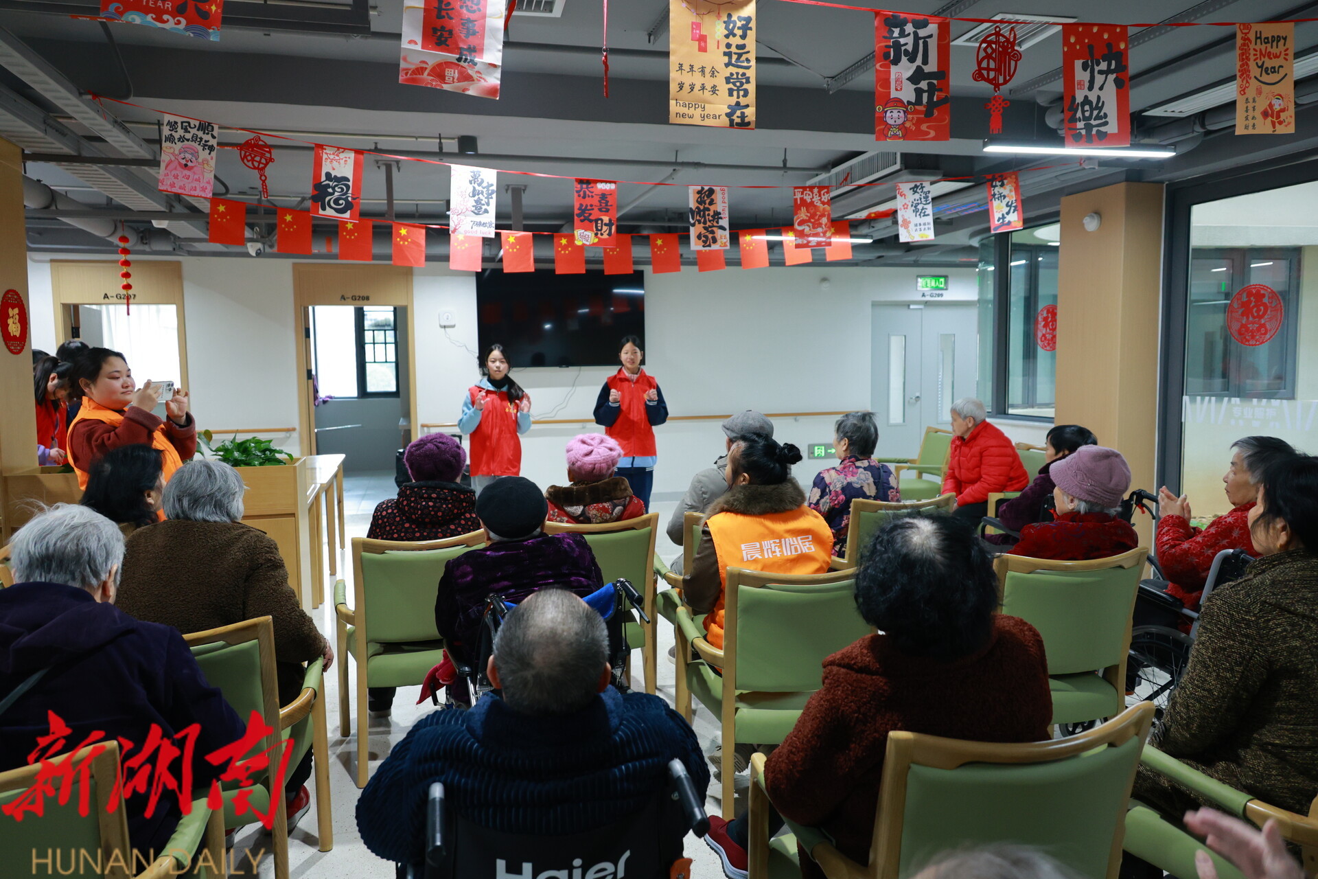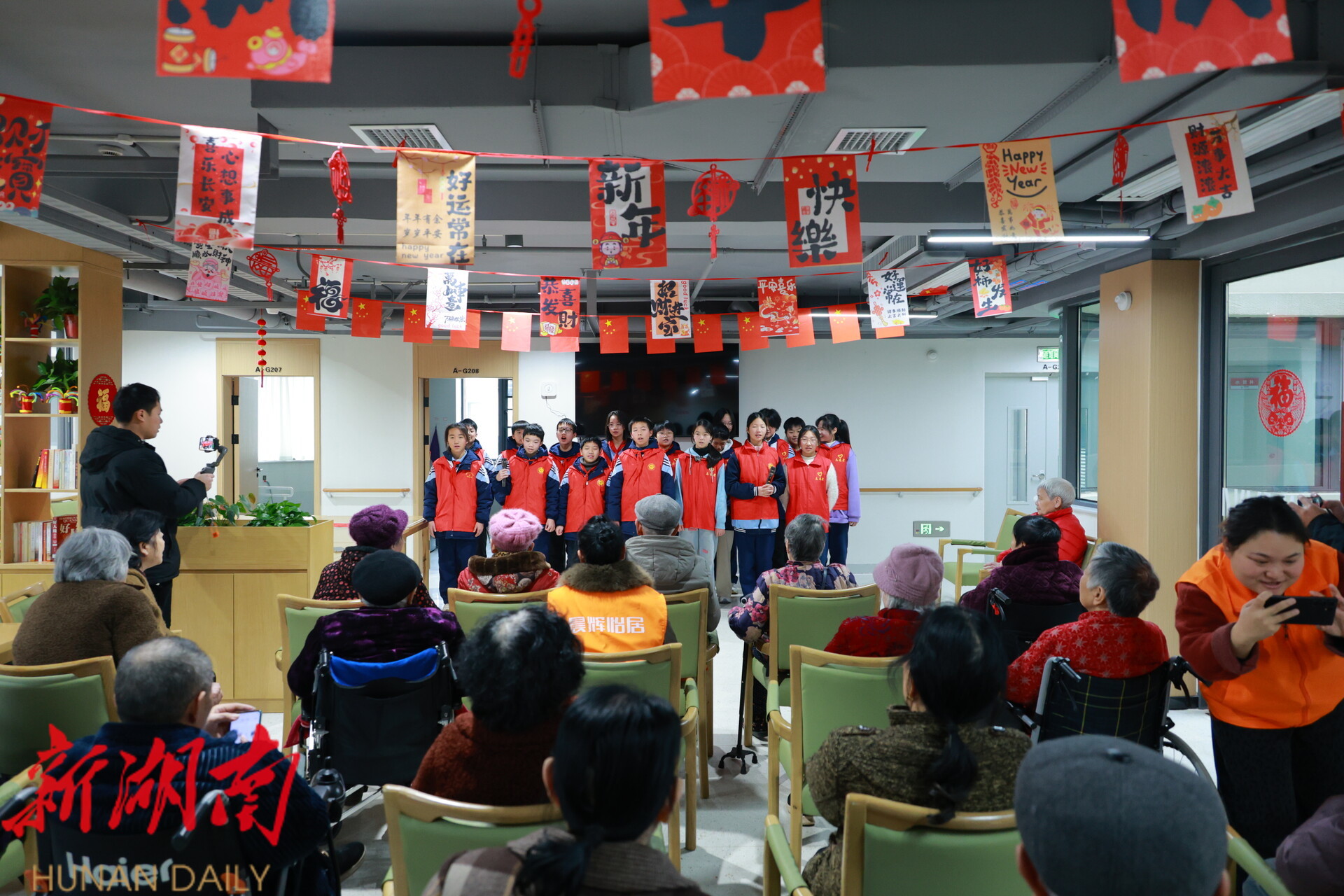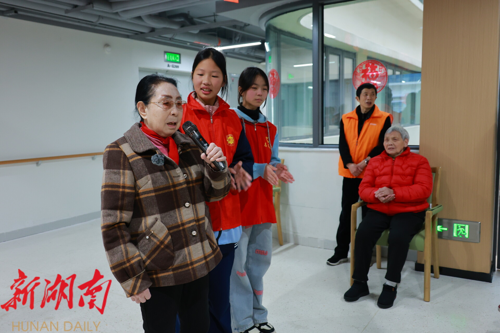 雨湖融媒1月31日讯 (记者 陈娟 肖泽全) 岁末天寒,爱心暖冬。1月31日是2026年雨湖区中学寒假首日,当天,雨湖区建元中学2504班学生志愿者团队怀揣热忱与敬意,走进晨辉怡居养老院,以才艺表演、温情陪伴、慰问献礼的方式,为院内老人们送去浓浓的新春祝福,用青春行动诠释尊老敬老的传统美德,让这个冬日的养老院暖意融融。