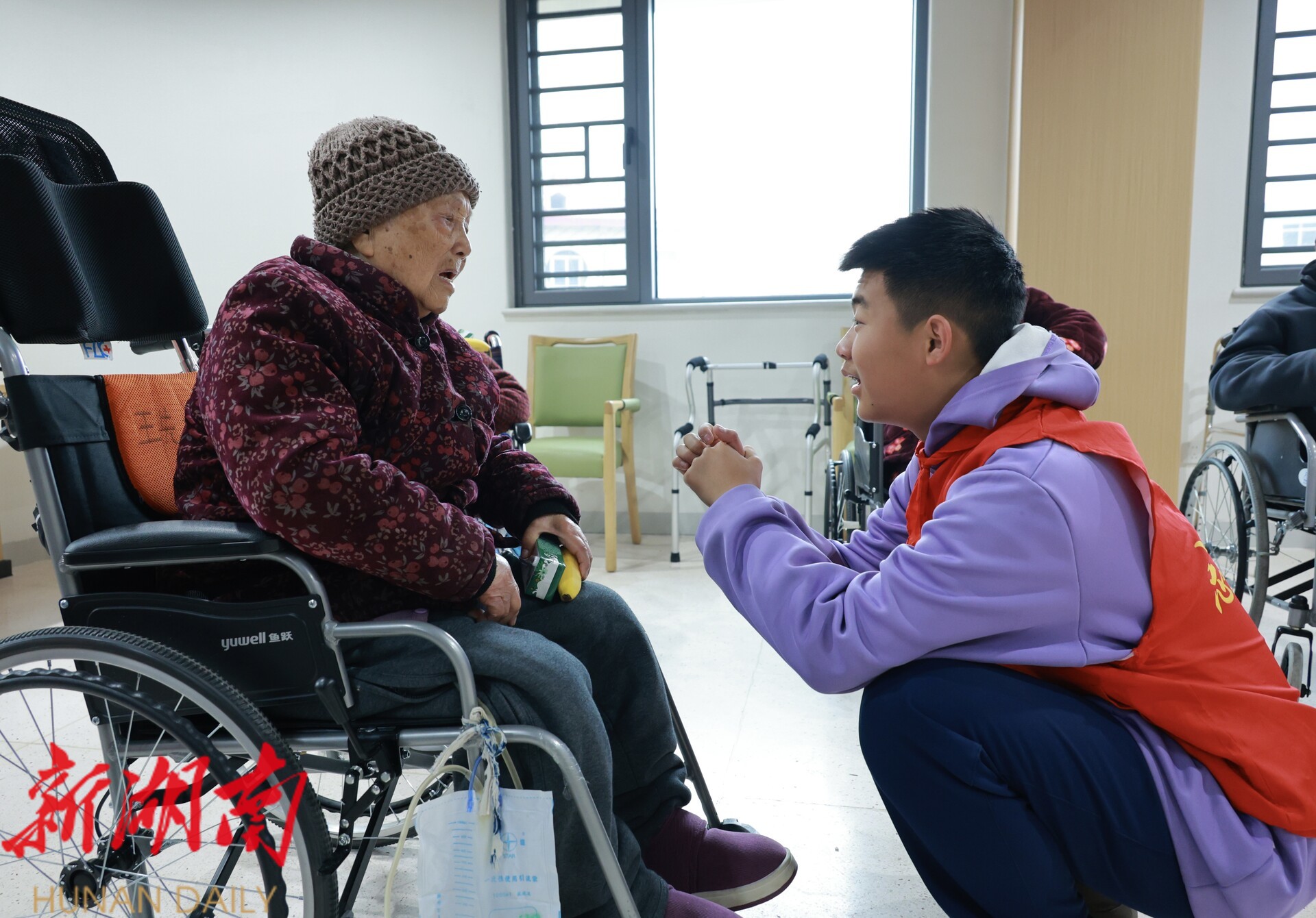 陪老人聊天。