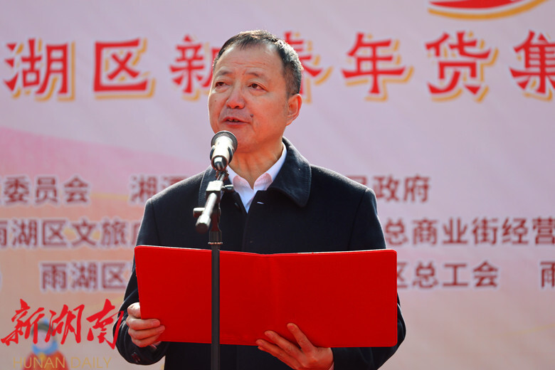 陈小平宣布活动开始。柳军辉在致辞中指出,本次年货集市,展现出“年味最浓、品类最全、体验最优、福利最多”的特点,86个展位串联起数百种特色商品,更有线上直播带货、线下互动体验的多元消费场景,让大家一站式备齐年货、沉浸式感受年俗。希望以这场“烟火气”十足的盛会为纽带,让市民乡亲们在热闹赶集间重拾儿时年味,让各位商户朋友在供需两旺中收获满满商机,也希望大家多为雨湖发展建言献策,多向亲朋好友推介雨湖的美食美景、好物好礼,让更多人走进雨湖、了解雨湖、爱上雨湖。