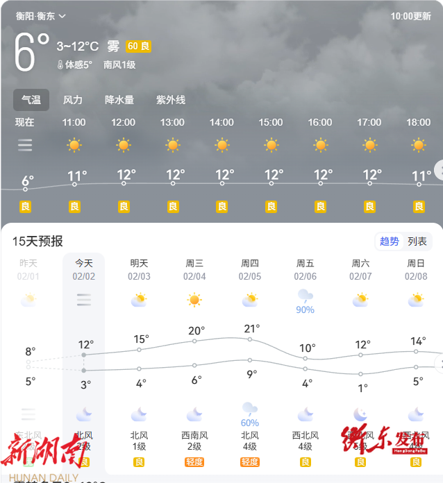 2月1日,阴雨暂歇,天气相对温和,体感依旧湿冷。监测显示,当日最高气温8℃,2月2日,最高气温将迅速回升至12℃;2月3日、4日,以晴间多云天气为主,其中2月4日恰逢“立春”节气,最高气温将上冲至20℃,体感上有“春天来了”的味道。