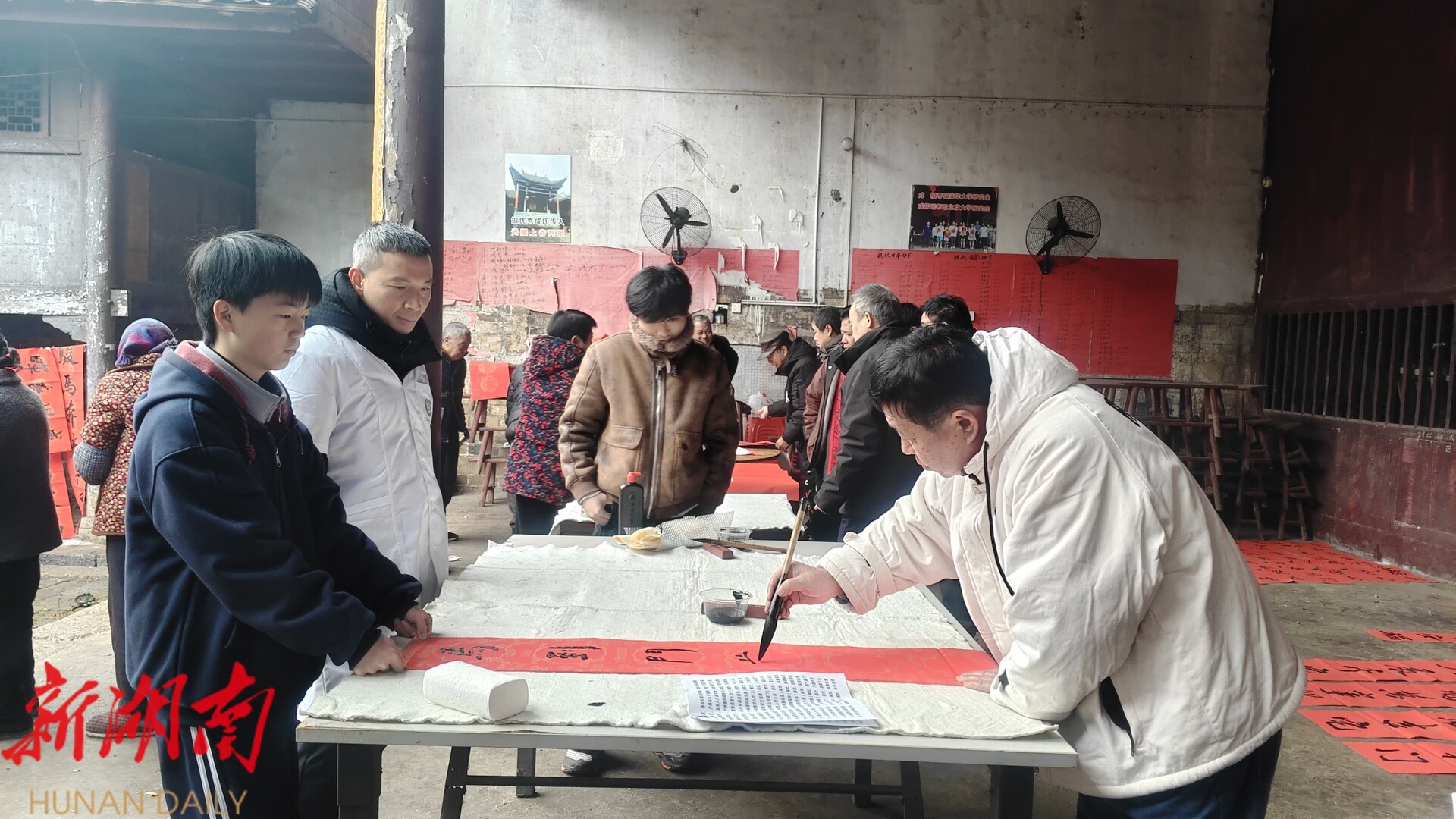 新桂阳2月2日讯(记者 唐汀 )1月31日,樟市镇新桥村太平组开展“现场挥毫送春联 文化惠民暖人心”活动。活动邀请县新华书店、陈麟玉艺术馆等书法志愿者走进村组,以笔墨传福韵,以服务暖民心,为村民送上满满得新春祝福,营造出欢乐祥和得节日氛围。
