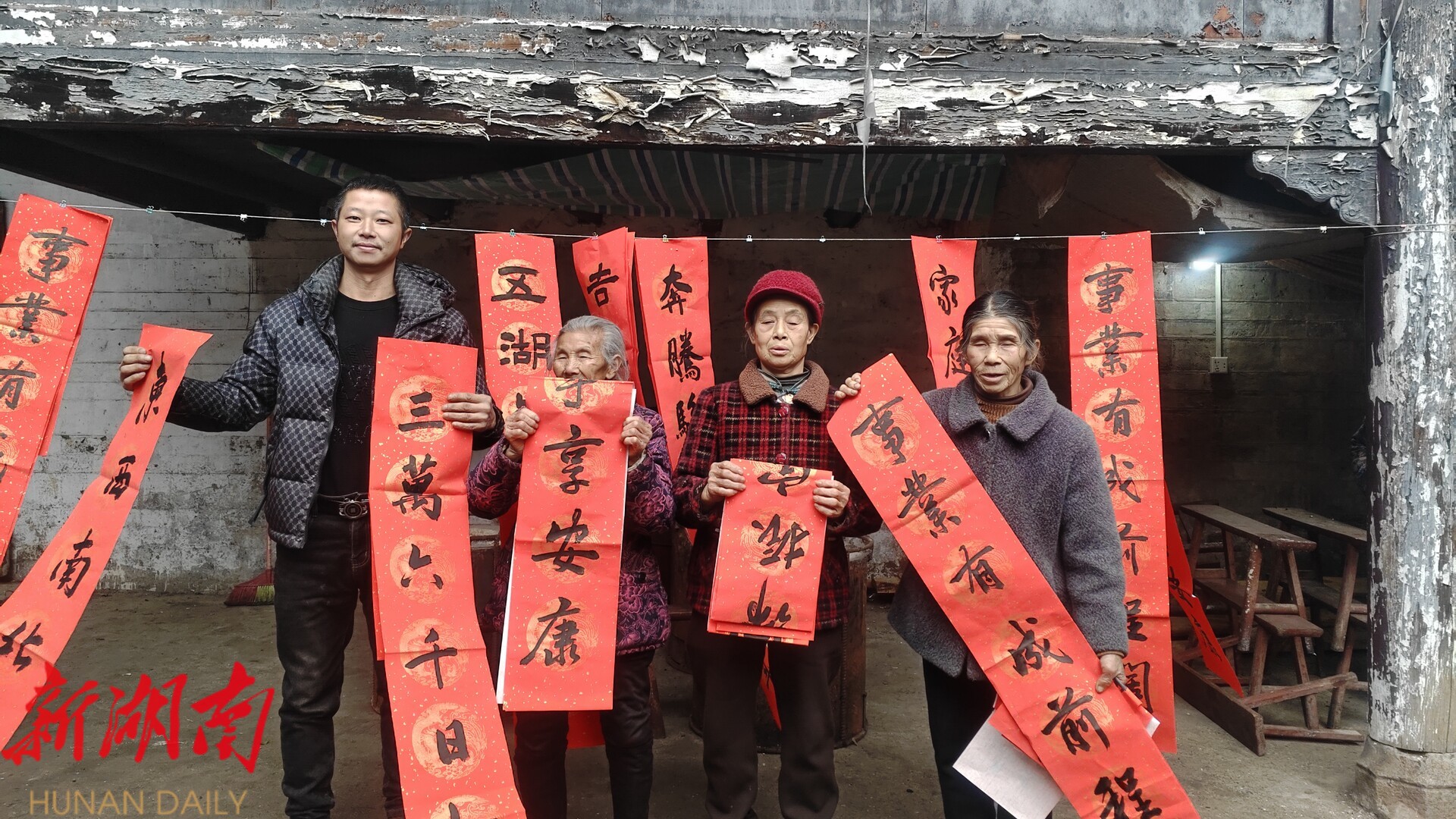 志愿者为樟市镇新桥村村民送春联