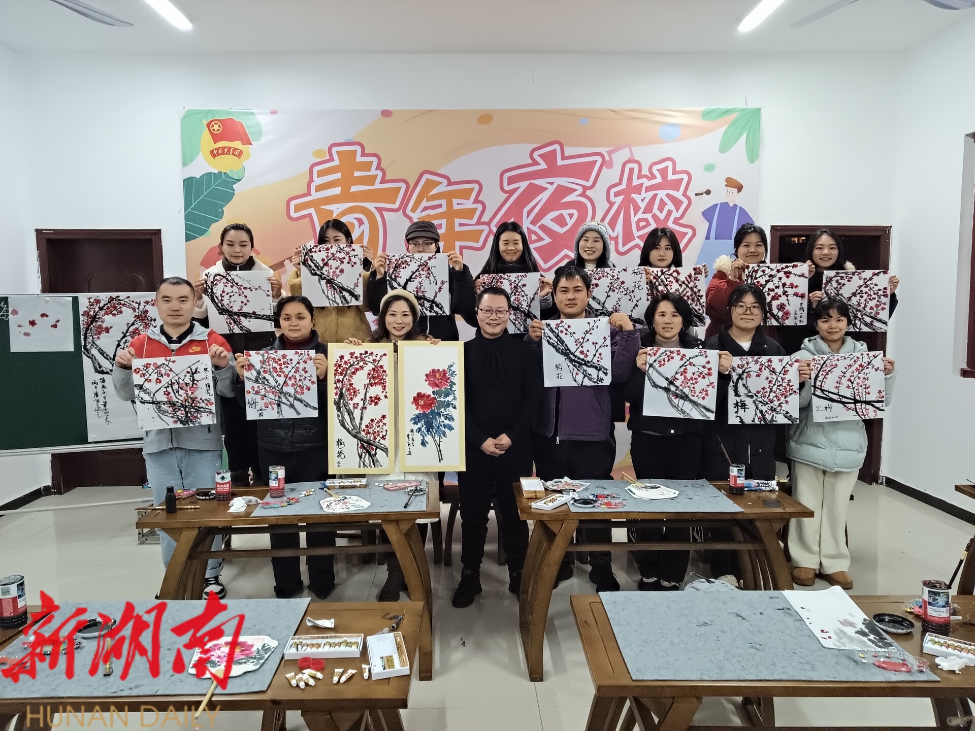 晚上七点半,华灯初上,在县文化园“青年夜校”教室里,十多位学员在导师地指导下,以传统水墨技法共绘梅花。老师重点讲授了梅花地“圈瓣法”和枝干地“女字交叉法”,引导学员体会如何通过笔墨地干湿浓淡、枝条地疏密穿插,来表现梅花地精神气质。
