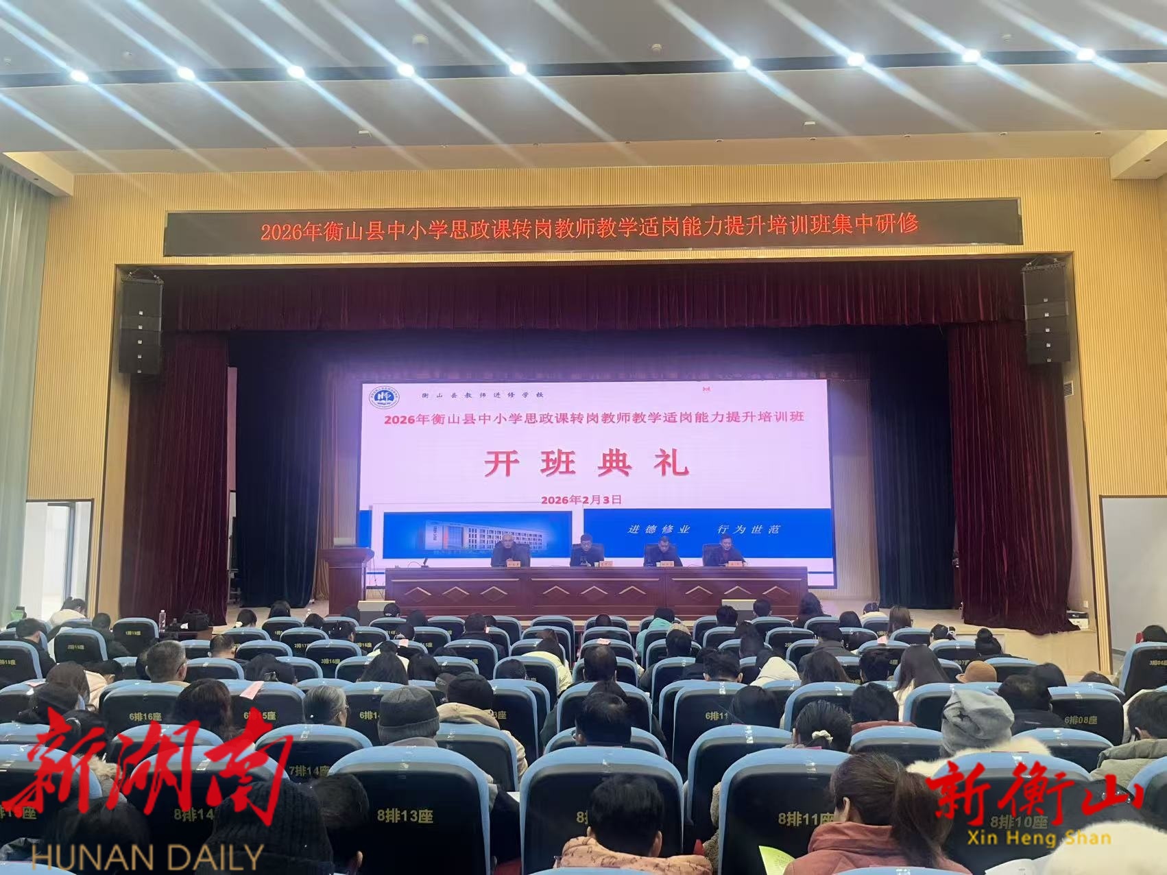 新衡山客户端2月3日讯(通讯员:胡程远 周继晋) 2月3日,我县中小学思政课转岗教师教学适岗能力提升培训班在县教师进修学校正式开班。本次培训旨在深入贯彻新时代思政课建设相关文件精神,着力破解非专业教师教授思政课的实践难题,全面提升思政课教学质量与育人实效。全县131名中小学非思政专业转岗教师参加培训。县教育局及相关领导出席开班仪式。