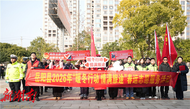 湖南日报·新湖南客户端2月3日讯(通讯员 尹宇豪 李芳暄) 2月2日,岳阳县2026年“暖冬行动·情满旅途”春运志愿服务活动在城南汽车站站前广场正式启动。此次活动由团县委、县交通运输局、县卫生健康局、县交警大队联合主办,县青年志愿者协会、县交通运输志愿服务队、岳阳南站、县荣瑞汽车运输有限公司协办,旨在统筹做好春运期间志愿服务工作,为广大群众提供平安、健康、便捷、舒畅的出行服务,打造“平安春运、便捷春运、温馨春运”。