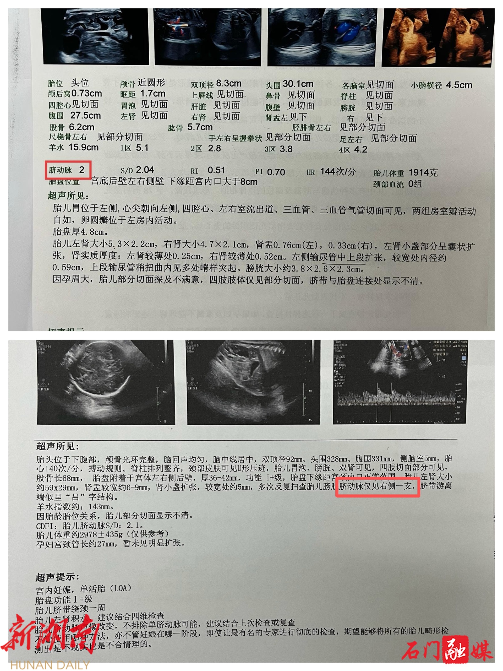 石门妇幼成功救治一例继发性单脐动脉胎儿