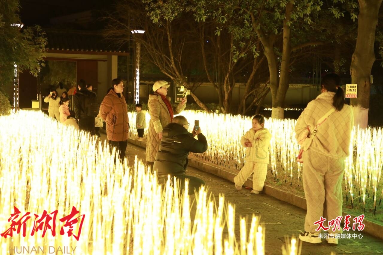 耒阳融媒2月3日讯(记者 曾志明 刘喜 雷坤) 2月2日晚上,耒阳市蔡伦纪念园“纸承千年・灯暖耒阳”光影夜游活动正式开园,活动将持续至3月8日。暖黄稻苗灯束沿主干道铺展,蔡伦文化主题光影装置与国潮演艺交相辉映,为市民游客带来沉浸式夜间文旅新体验。