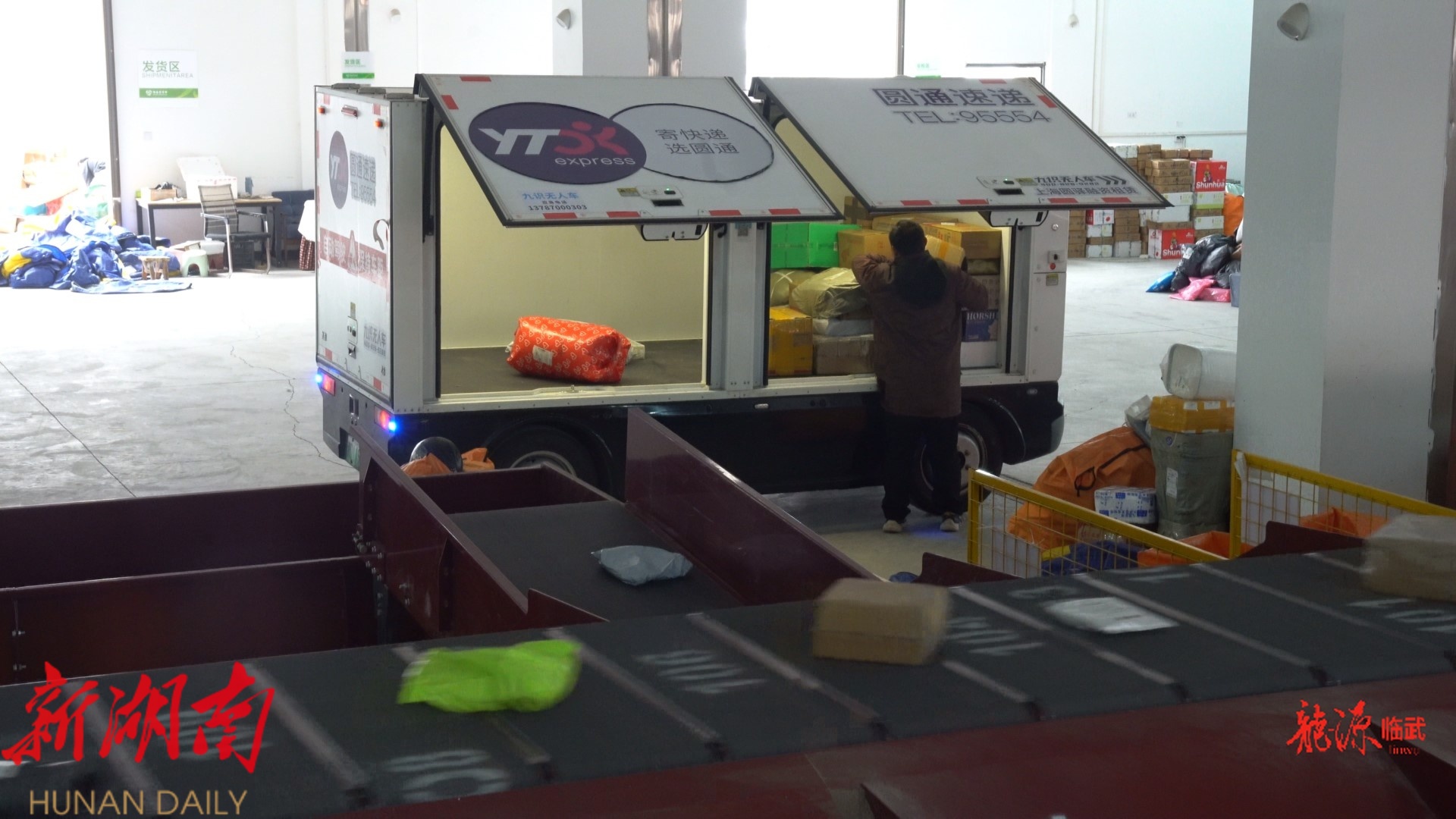 上午九点,临武县客货邮融合共配中心的分拣员李超熟练地把送往汾市镇的包裹码进无人车的“肚子”里。在手机上轻轻一点,这辆装满包裹的小车,就自己“睁开了眼睛”,稳稳地上了路。