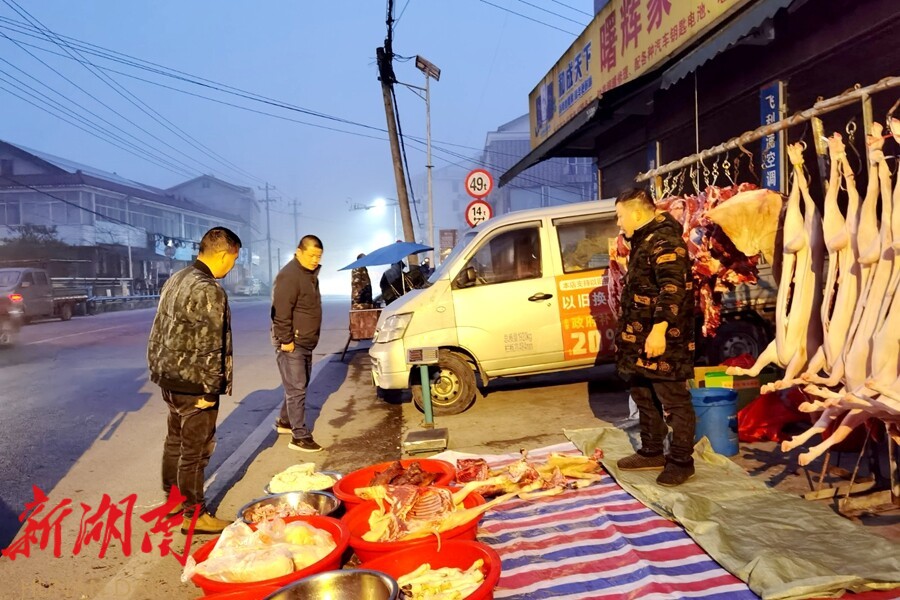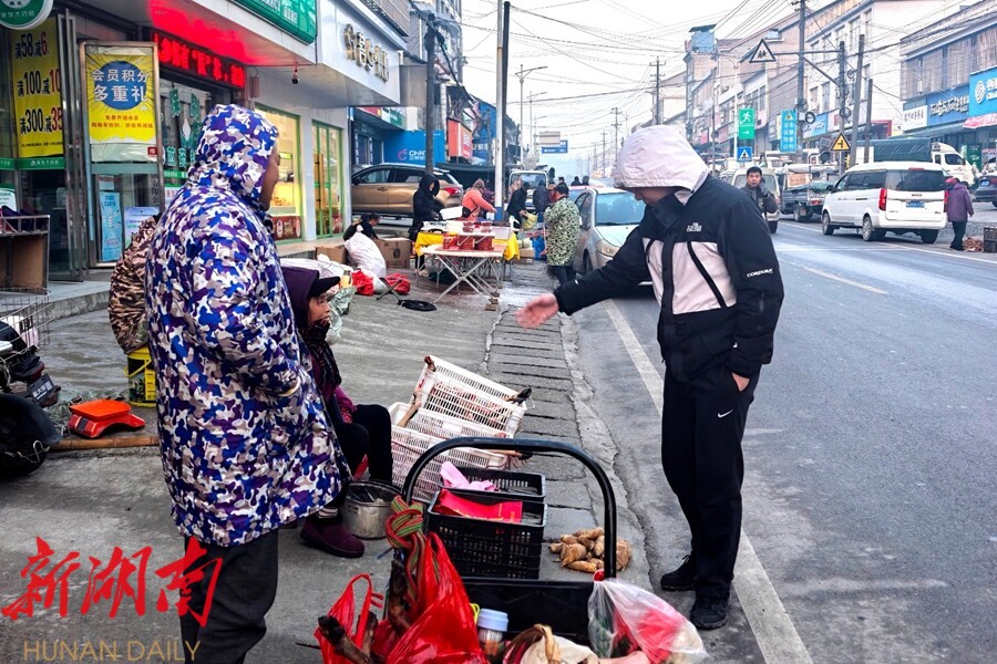 视外桃源客户端1月30日讯(通讯员:周瑶)每月逢尾号3、8的日子,晨雾朦胧,杨溪桥集镇上隐隐传来的吆喝声划破清冽的空气:“新鲜的冬笋哟——”“自己家产的蜂蜜——”一声接一声,唤醒静谧的集镇。沿街摊位依次摆开,鲜蔬水灵、腊味飘香,熙攘欢笑的人流绘成一幅流动的温暖年集画卷。