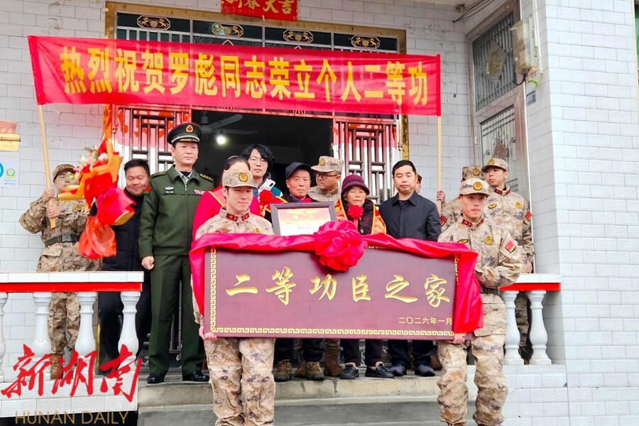 视外桃源客户端1月30日讯(通讯员:杨龙)1月29日,木塘垸镇热闹非凡,部队与地方联合组成送喜报队伍,来到荣立二等功的现役军人罗彪家中,将立功喜报、慰问金和“二等功臣之家”牌匾送到其家人手中,让尊崇之光照亮光荣之家。