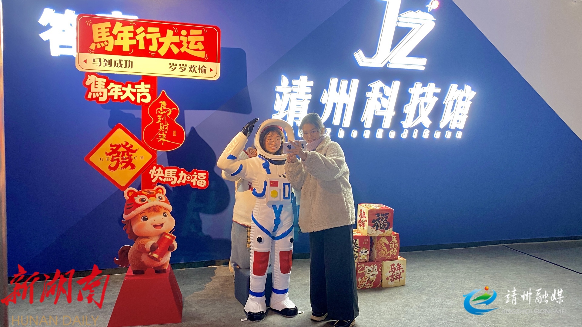 “科技馆新春布置很喜庆,能看到机器狗表演,还有青少年科幻画展览,充分体现了靖州对文化科普的重视。”西南财经大学大二学生龙韵谦表示。