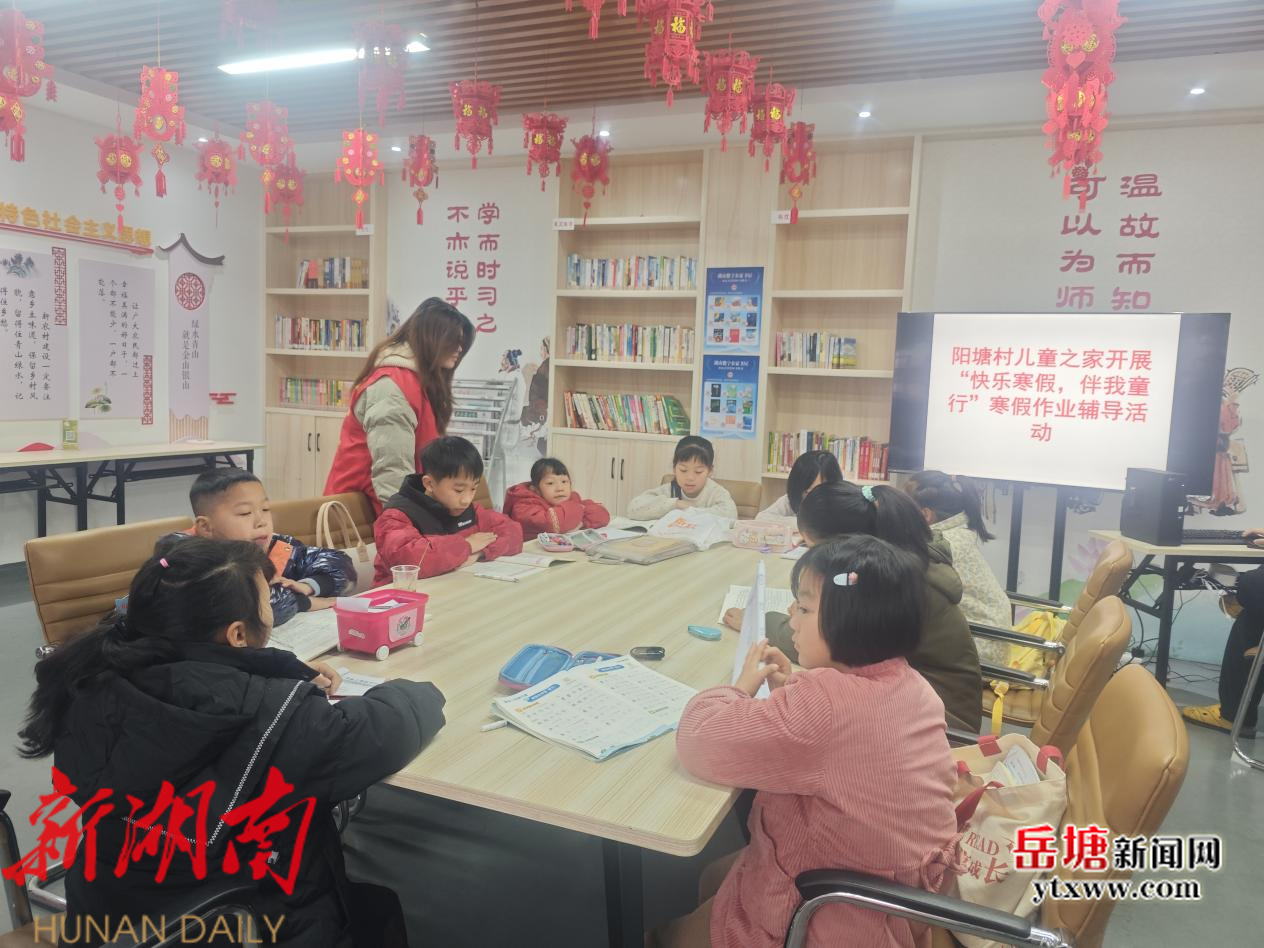 岳塘融媒 2月4日讯 (通讯员:许婷)为让孩子们的寒假既充实又有趣,近日,岳塘区霞城街道阳塘村儿童之家开办“快乐寒假,伴我童行”作业辅导班,以学玩结合的多元模式,破解假期“看护难”问题,让家长安心、孩子开心。