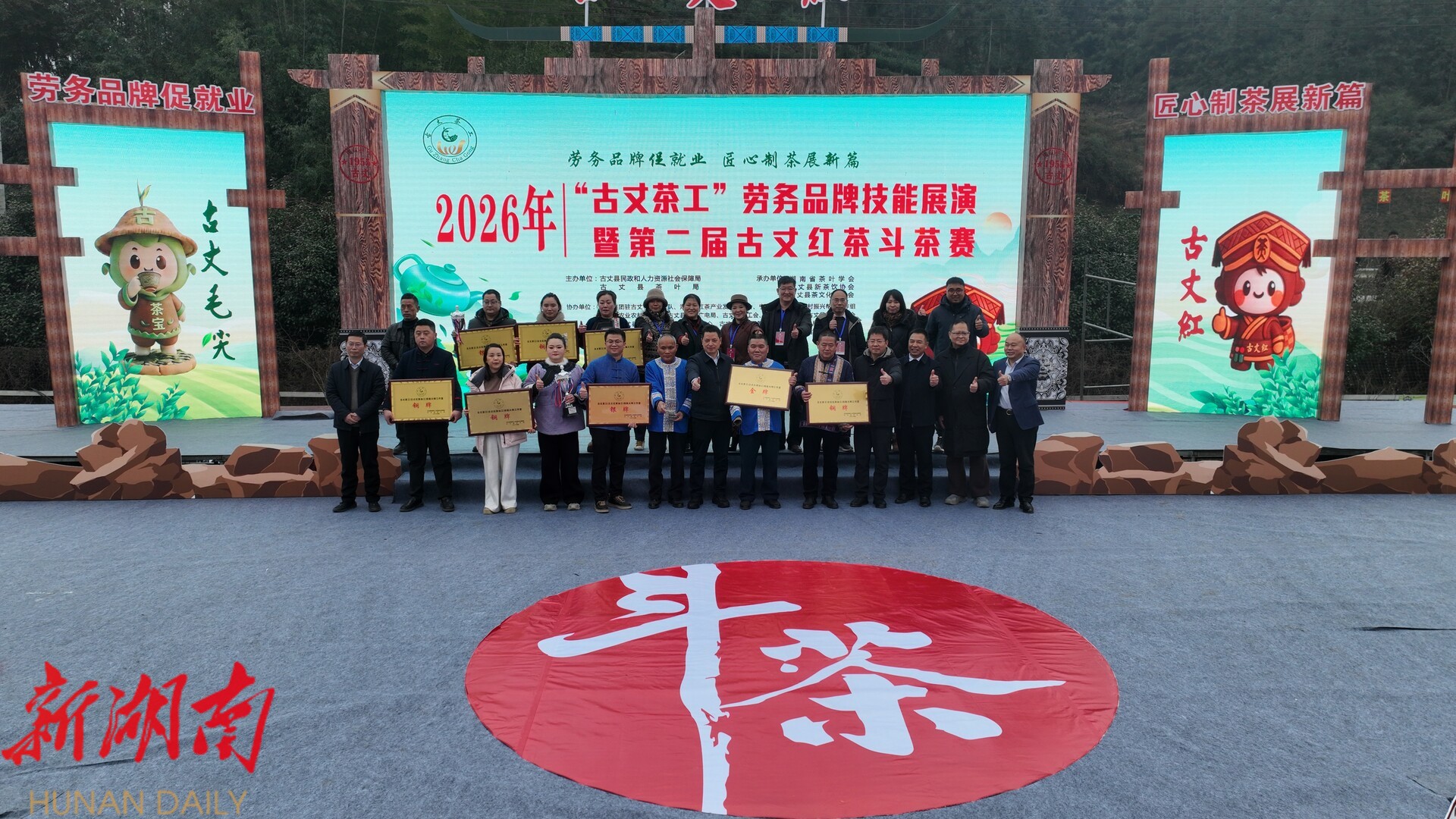 新湖南客户端2月4日讯(通讯员 郑湘 龙宇 向畅)春临茶乡,茗香致远。2月4日,2026年“古丈茶工”劳务品牌技能展演暨第二届古丈红茶斗茶赛精彩启幕。数百名茶界专家、茶企代表、制茶能手以茶为媒切磋技艺,共话茶故事,共商茶产业。县委书记滕朝辉,县委副书记、县长陈建新,县领导郜晓丽、文少亮、王申强、宋晓波参加。